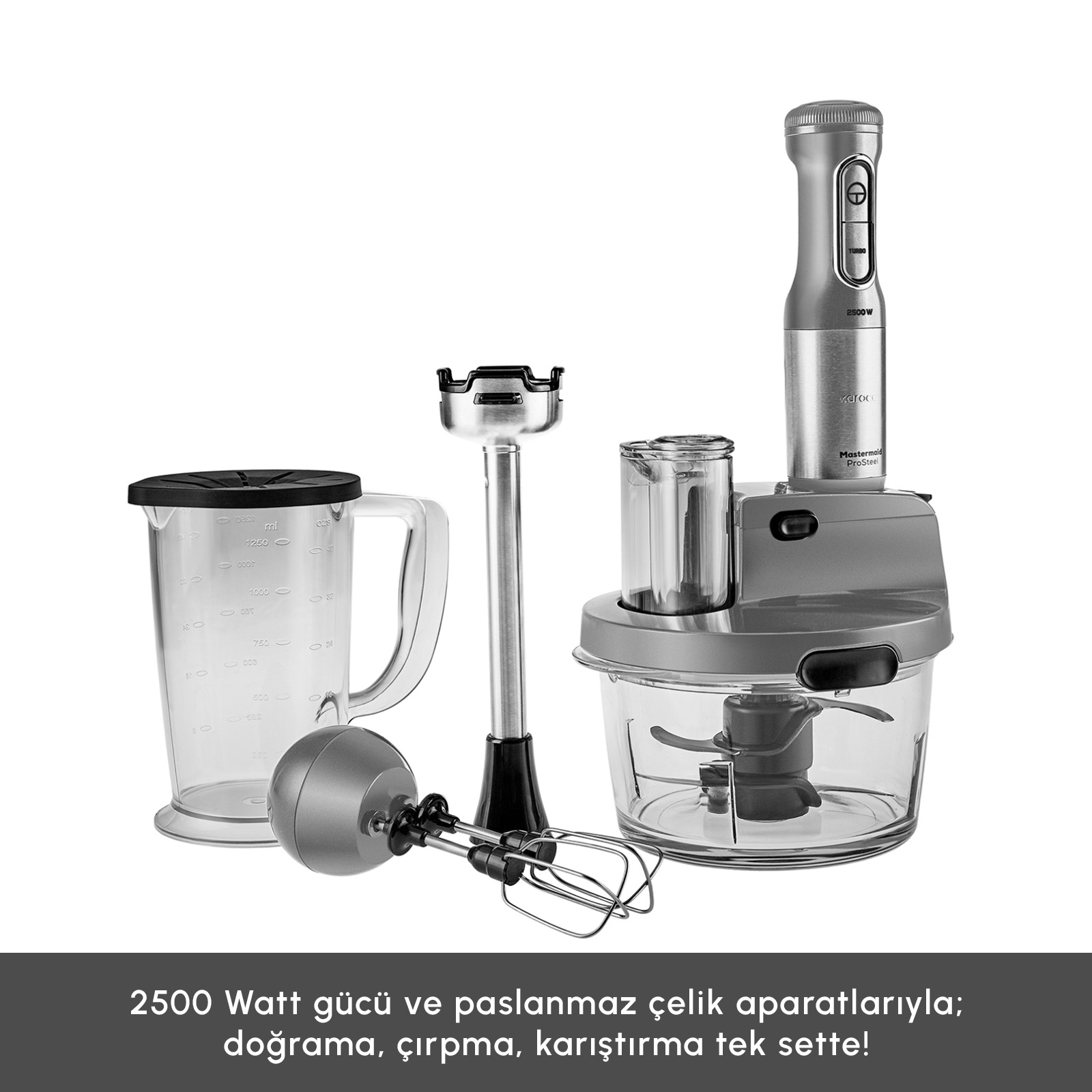 - Mastermaid ProSteel Mutfak Robotu ile doğranmış gıdalardan kıvamlı karışımlara, pürelerden Smoothie’lere kadar dilediğiniz tüm lezzetleri hazırlamak oldukça hızlı ve pratik.