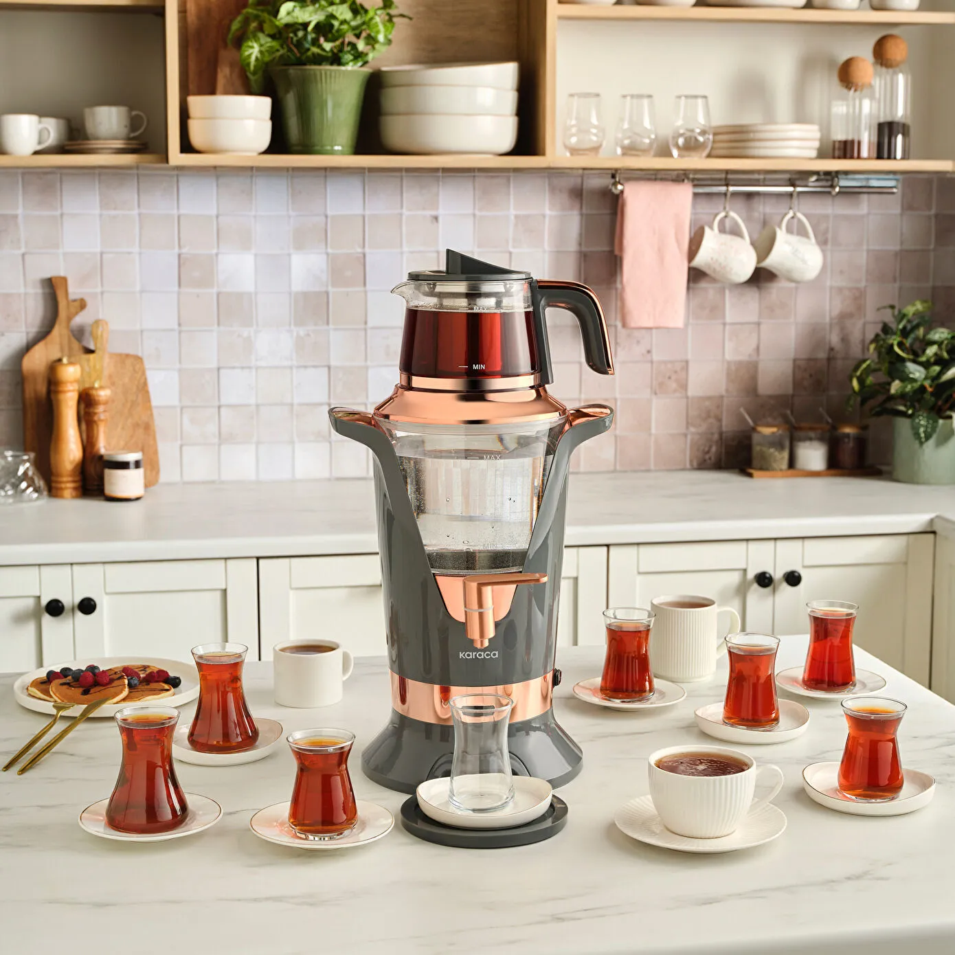 1 litre cam demlik ve 3 litre XL cam su haznesi sayesinde tek seferde 35* bardağa kadar çay hazırlayabilirsiniz. Kalabalık aileler ve misafirli sofralar için idealdir.