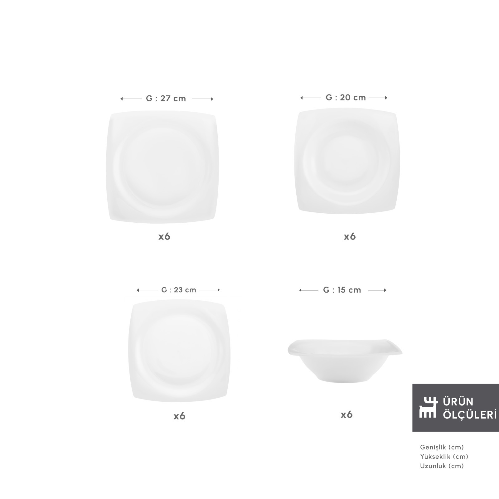 Karaca Square Bone Mensa 24 Parça 6 Kişilik Yemek Takımı Beyaz
