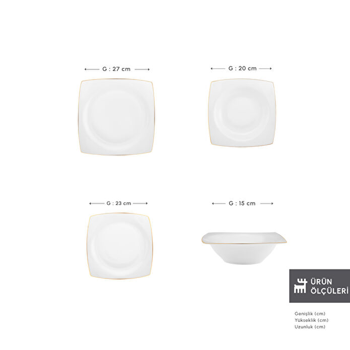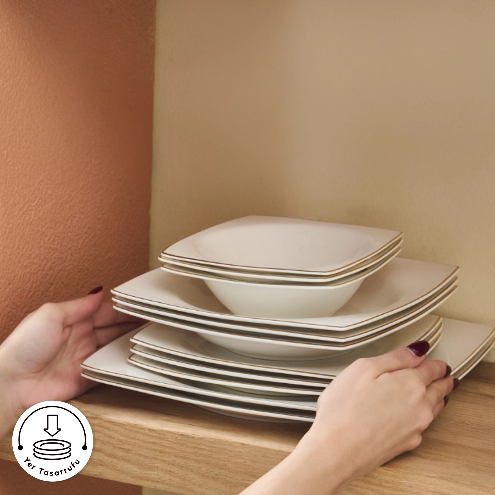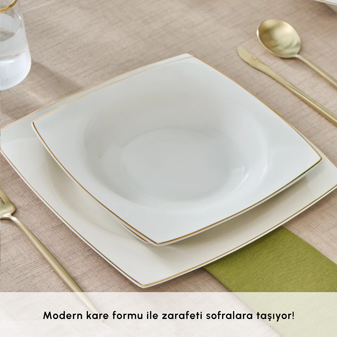 Karaca Square Bone Mensa 24 Parça 6 Kişilik Yemek Takımı Gold