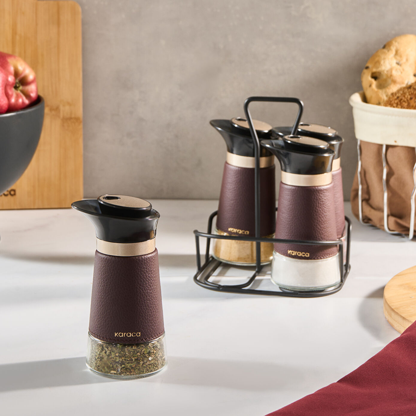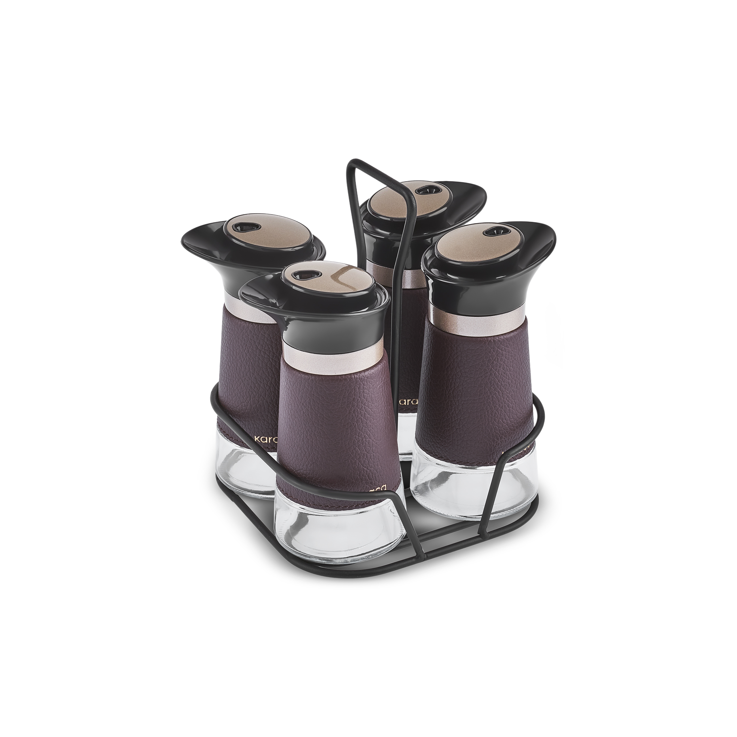 Baharatlarınızı şık bir şekilde saklayın! Karaca New Latin Baharat Seti, modern tasarımı ve kahverengi cam detaylarıyla mutfağınıza zarif bir dokunuş katıyor.
