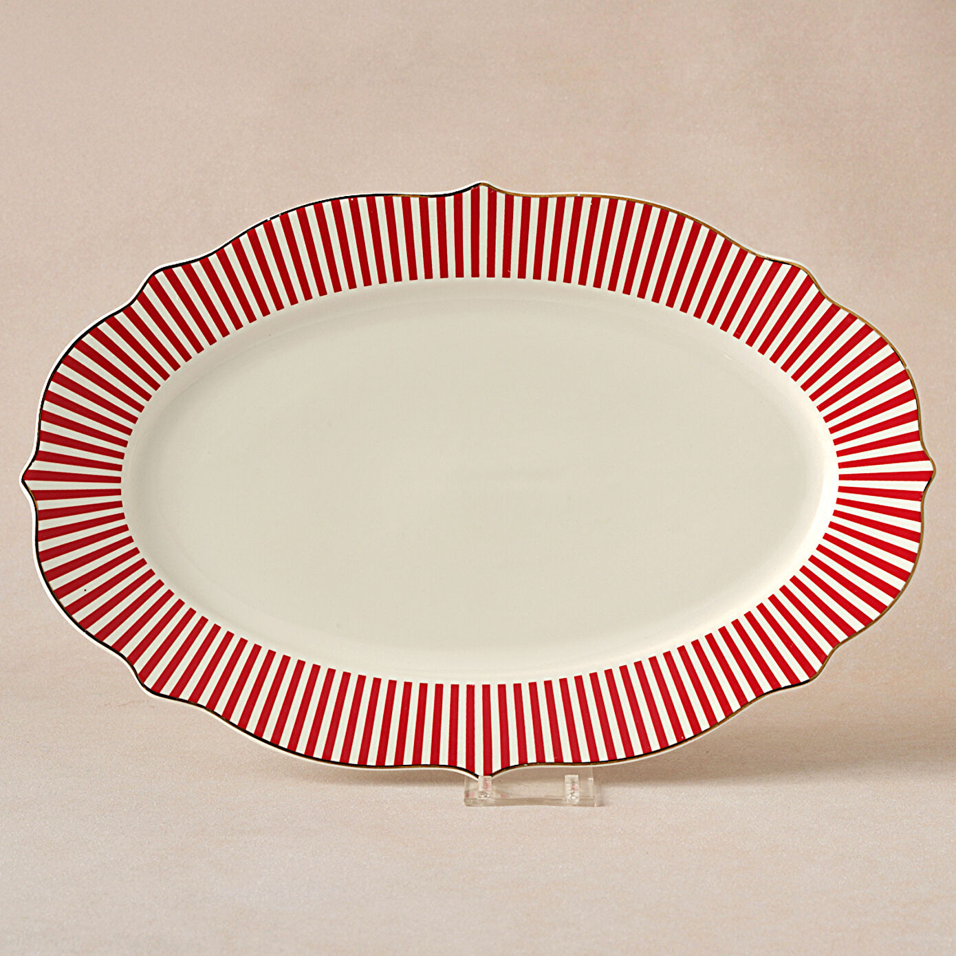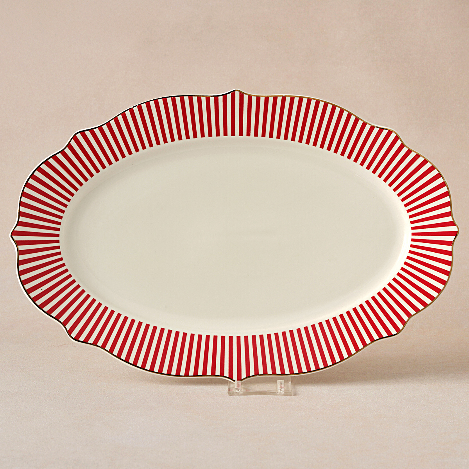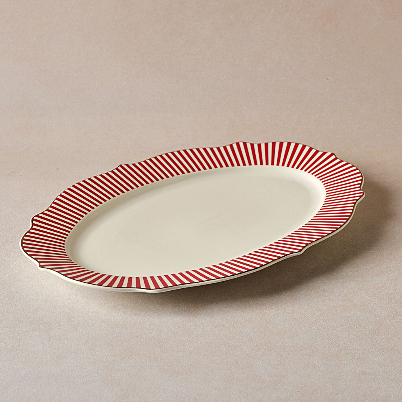 Karaca New Romantic İnce Çizgili Kayık Tabak 36 Cm Kırmızı
