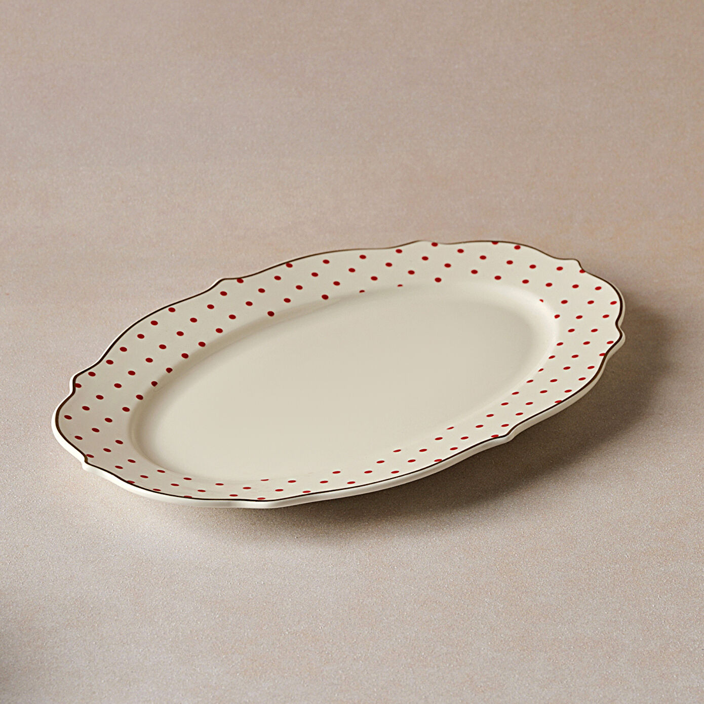 Karaca New Romantic Puantiyeli Kayık Tabak 30 cm Kırmızı
