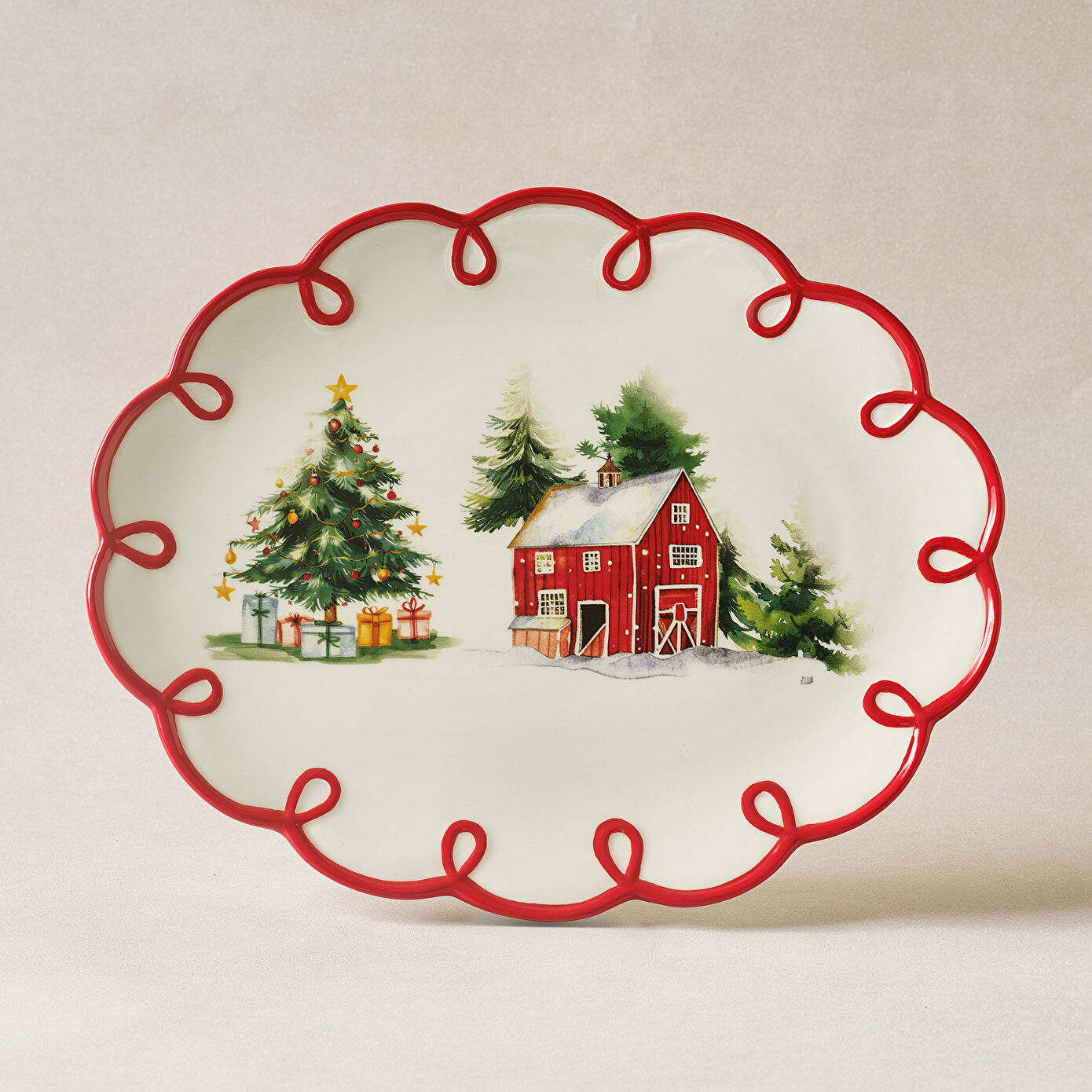 Karaca New Year Yılbaşı Cottage Kayık Tabak 30,5 cm