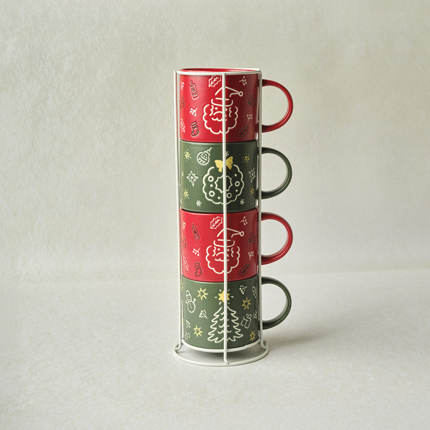 Karaca New Year Yılbaşı Angel 4 Kişilik Standlı Kupa Seti