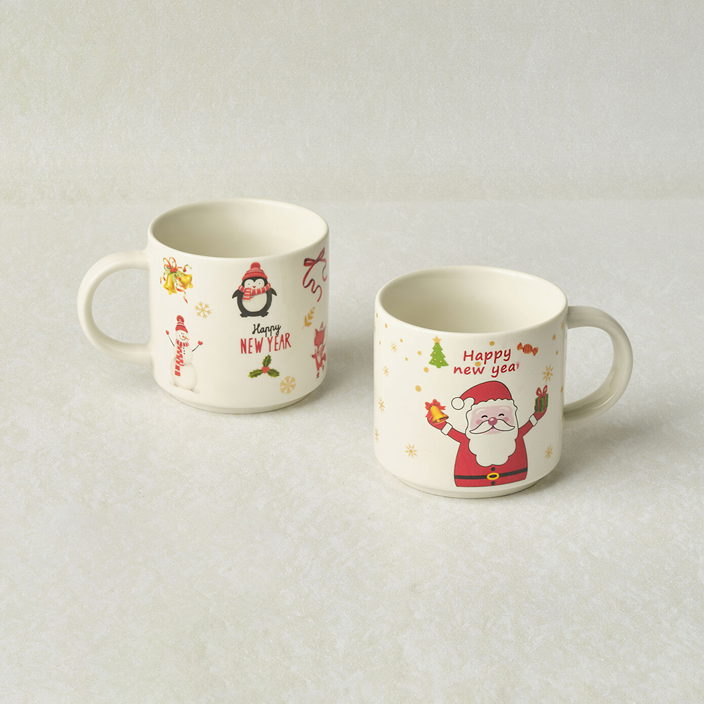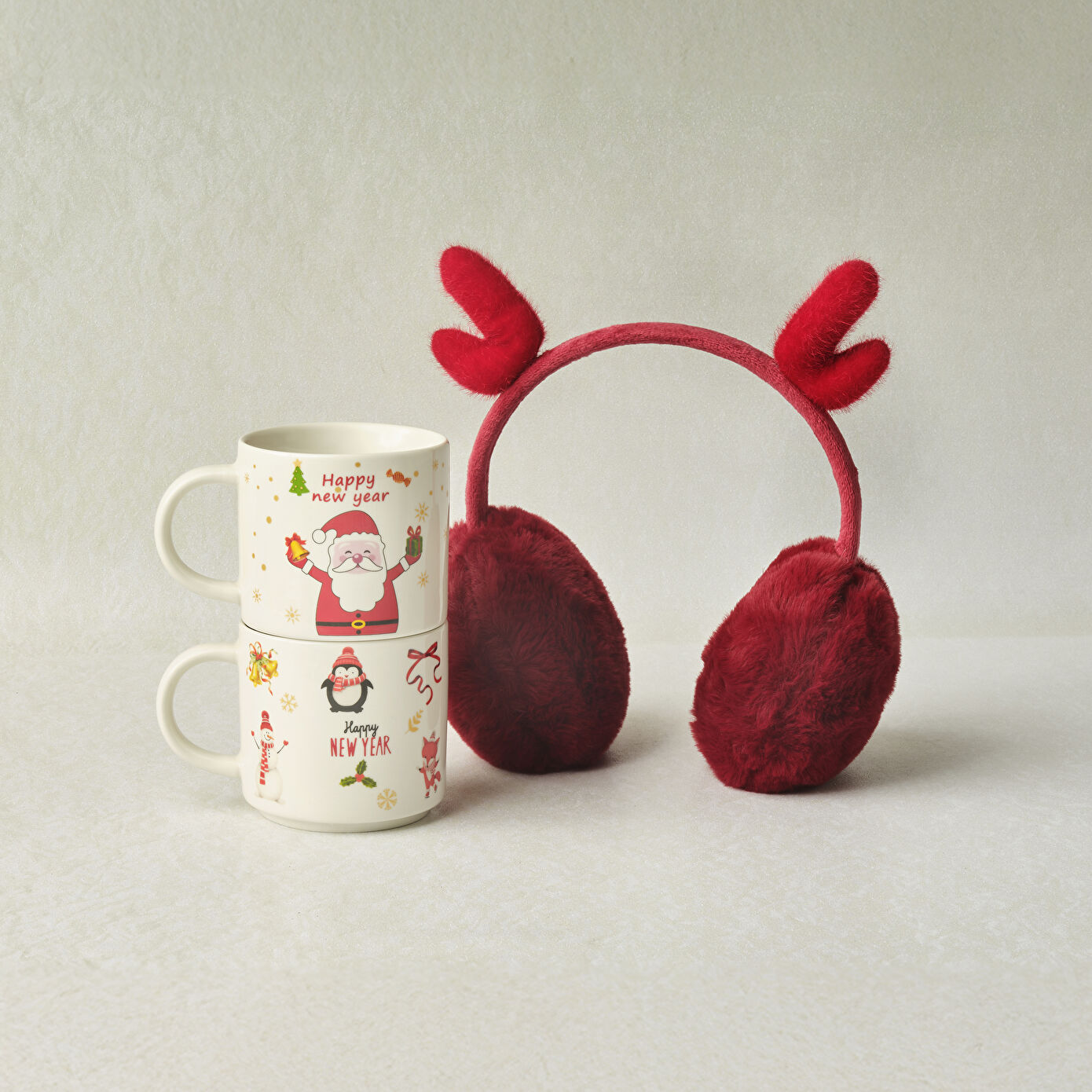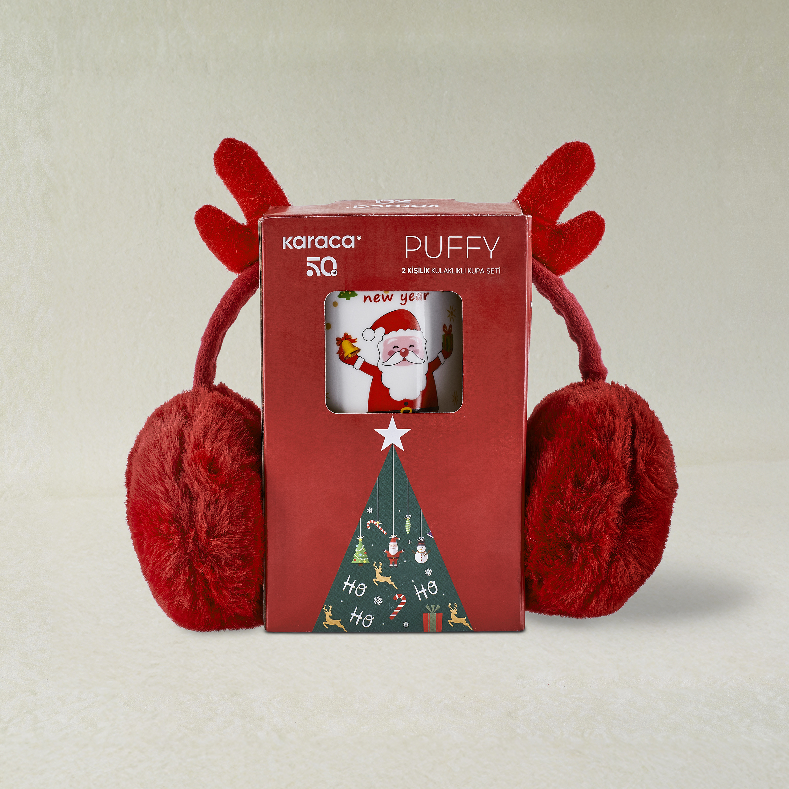 Karaca New Year Yılbaşı Puffy 2 Kişilik Kulaklıklı Kupa Seti