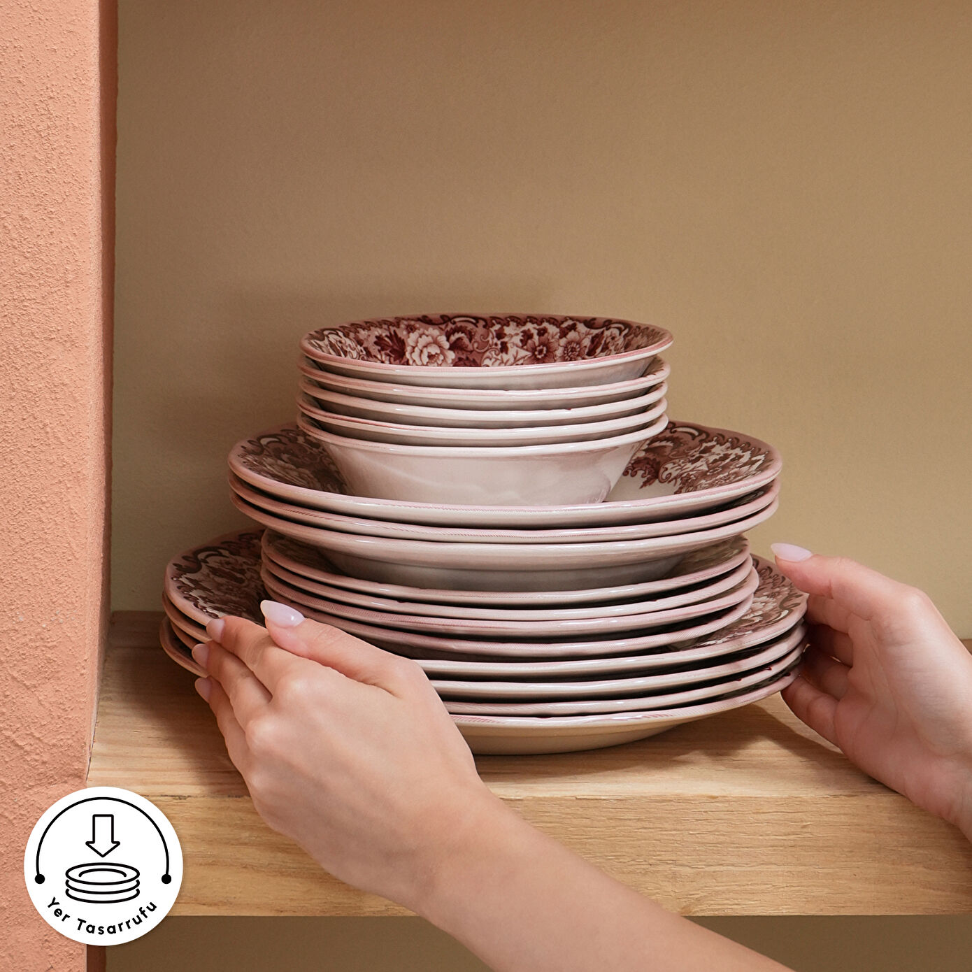 Karaca Old Town 24 Parça 6 Kişilik Yemek Takımı Bordo