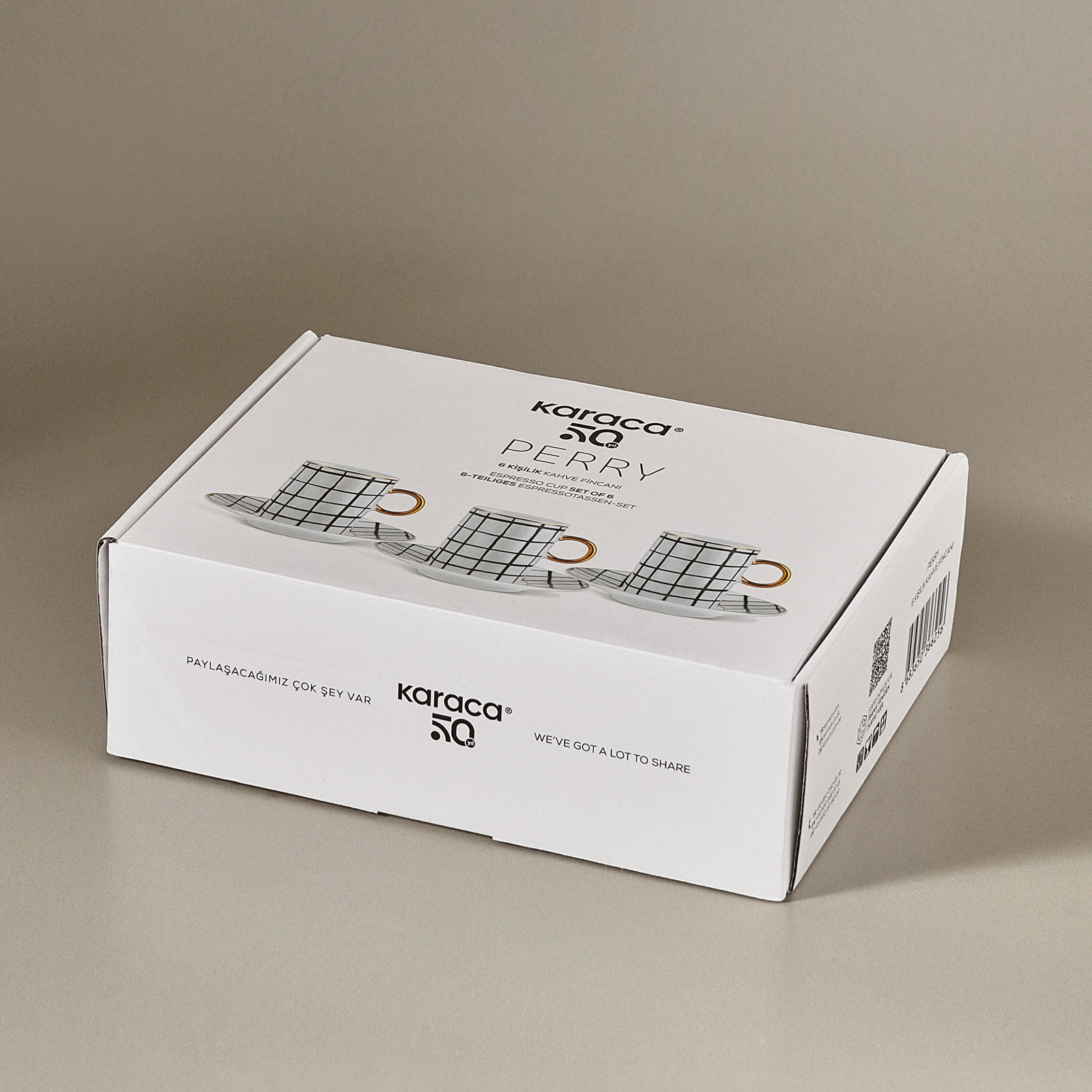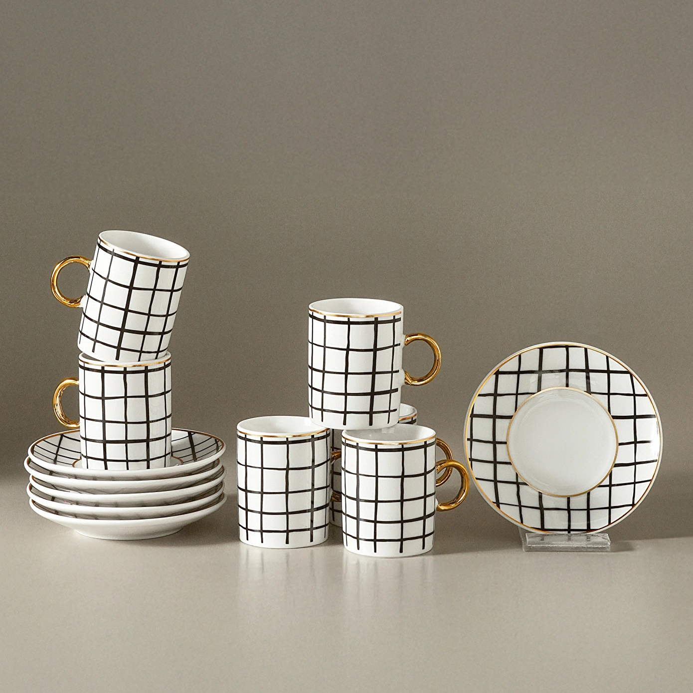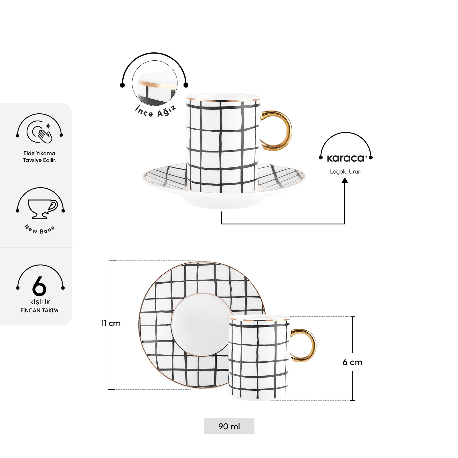Karaca Perry Çizgili 6 Kişilik Kahve Fincan Takımı 90 Ml