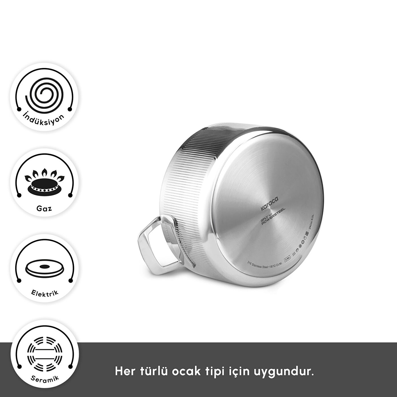 Karaca Plasma Steel 316+ 3Ply Apollo İndüksiyon Tabanlı 7 Parça Çelik Tencere Seti