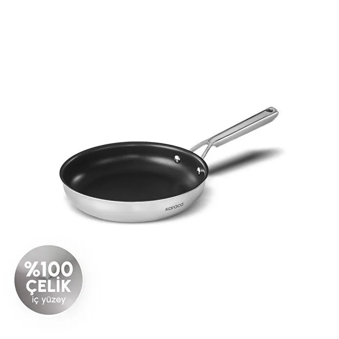 İndüksiyon tabanlı yapısı sayesinde indüksiyon dahil tüm ocak tiplerinde ve fırında kullanıma uygundur. Üç katmanlı gövdesi, ısıyı eşit şekilde dağıtarak omlet, kahvaltılıklar, sebze sote ve küçük porsiyonlarda ideal pişirme performansı sağlar. Bulaşık makinesinde yıkanabilir ve yapışmaz çelik yüzeyi sayesinde yalnızca ıslak bir bezle bile kolayca temizlenebilir.