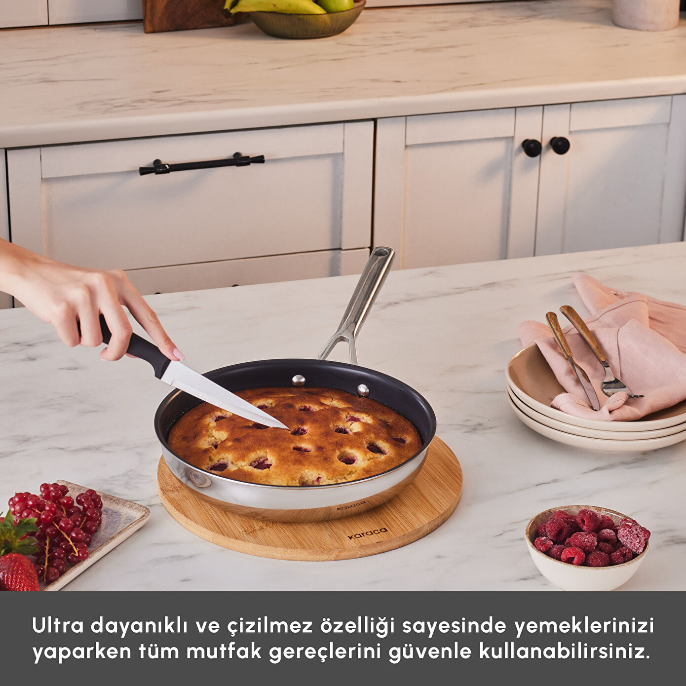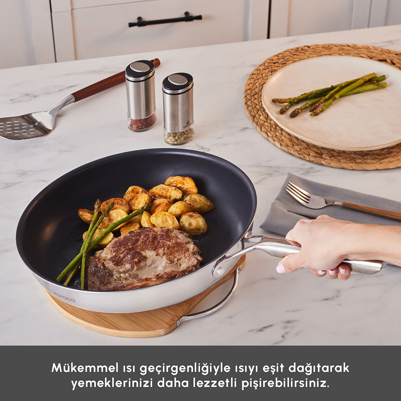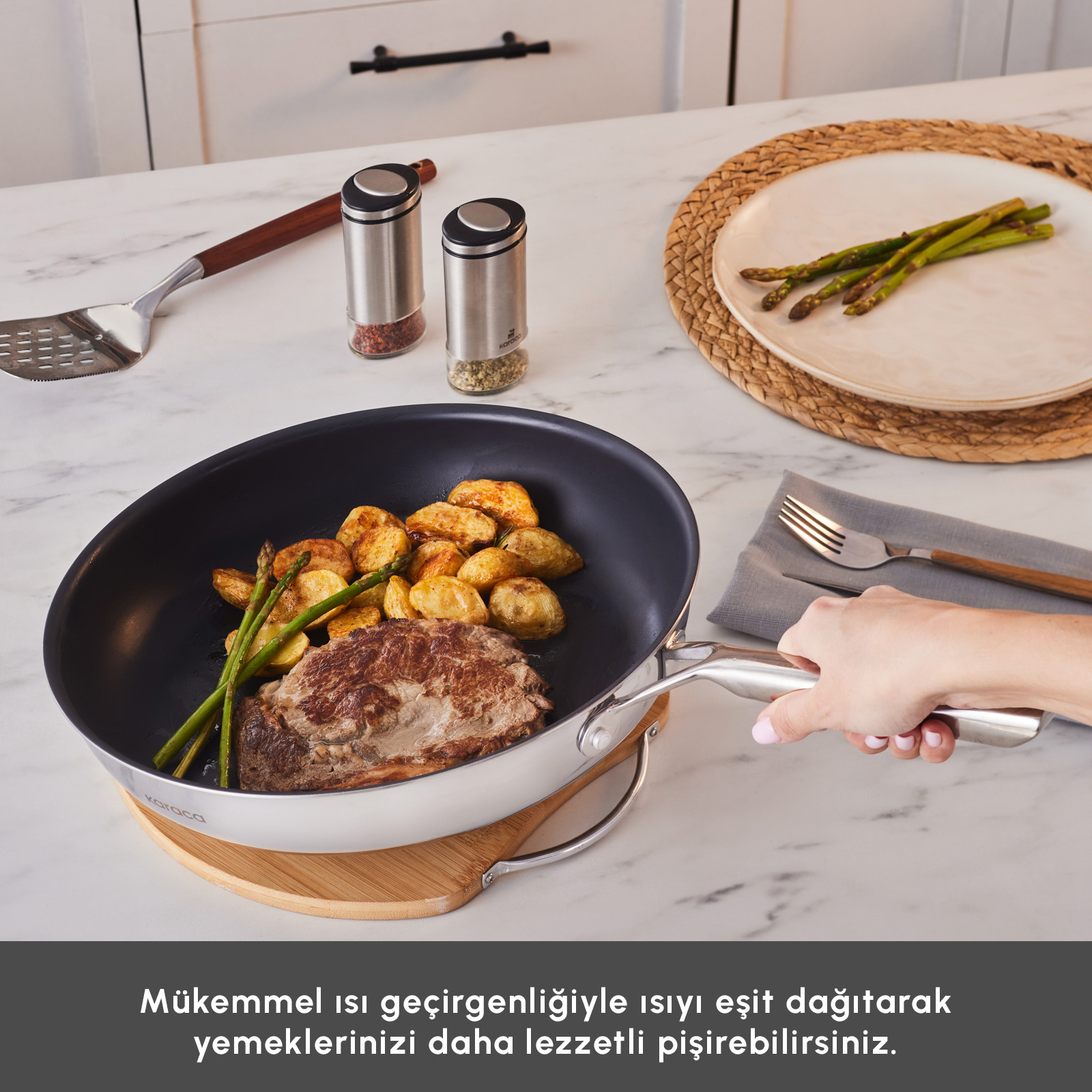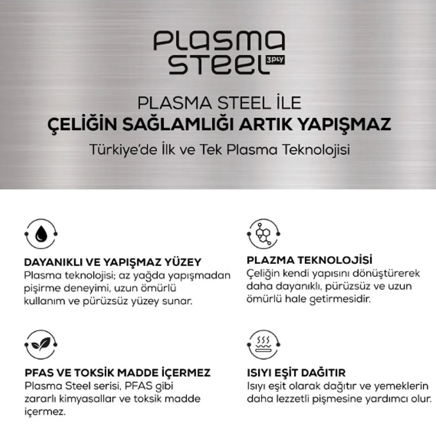 Çeliğin yapısını dönüştüren Plasma Teknolojisi ile geliştirilen Karaca Plasma Steel Ailesi, 316+ paslanmaz çelikten üretildi. Toksik madde ve PFAS içermez. Dayanıklılık, güvenli kullanım ve dengeli pişirme performansını bir araya getirir.