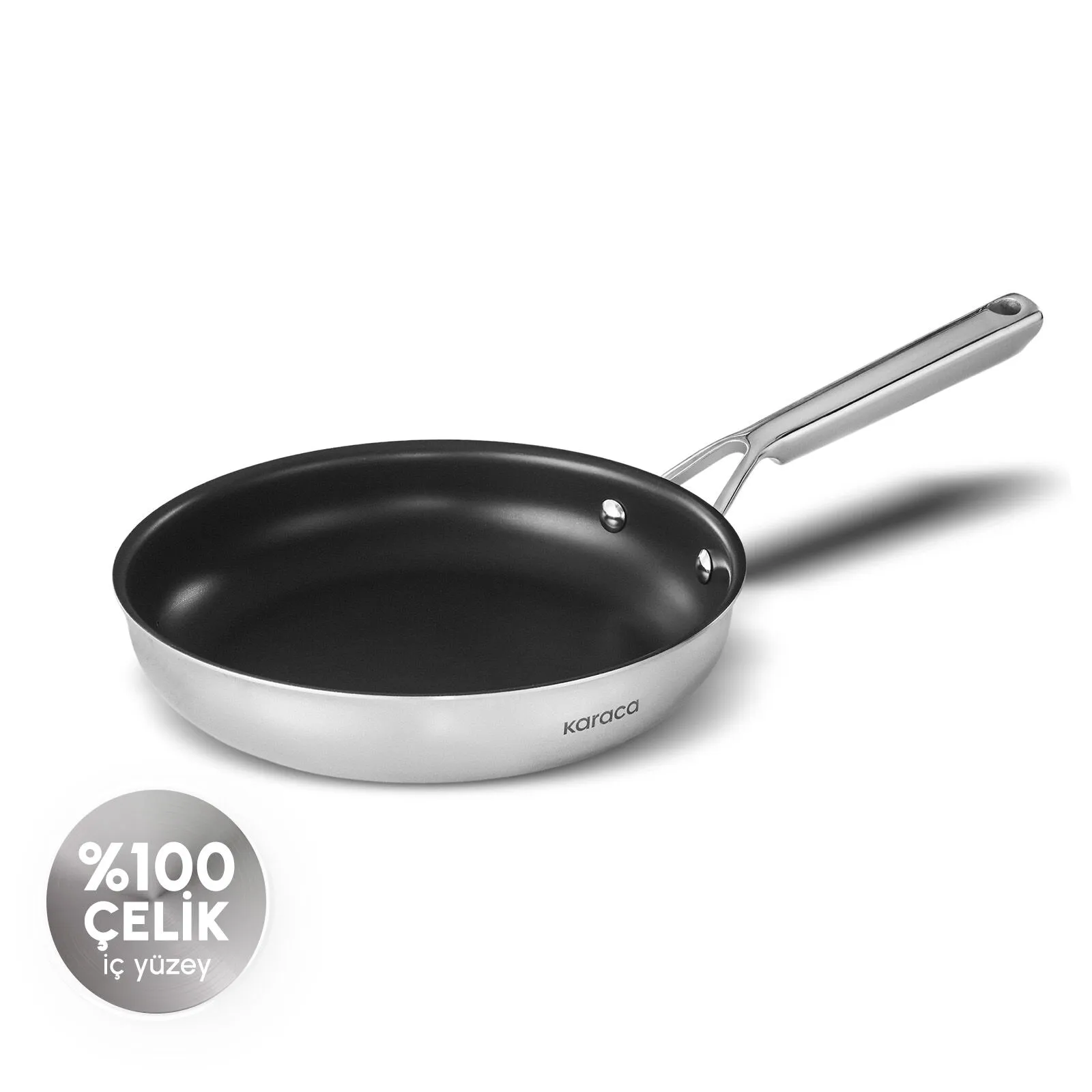 İndüksiyon tabanlı yapısı sayesinde indüksiyon dahil tüm ocak tiplerinde ve fırında kullanıma uygundur. Üç katmanlı gövdesi, ısıyı eşit şekilde dağıtarak et, tavuk, balık ve sebze gibi tariflerde ideal pişirme performansı sağlar. Bulaşık makinesinde yıkanabilir ve yapışmaz çelik yüzeyi sayesinde yalnızca ıslak bir bezle bile kolayca temizlenebilir.