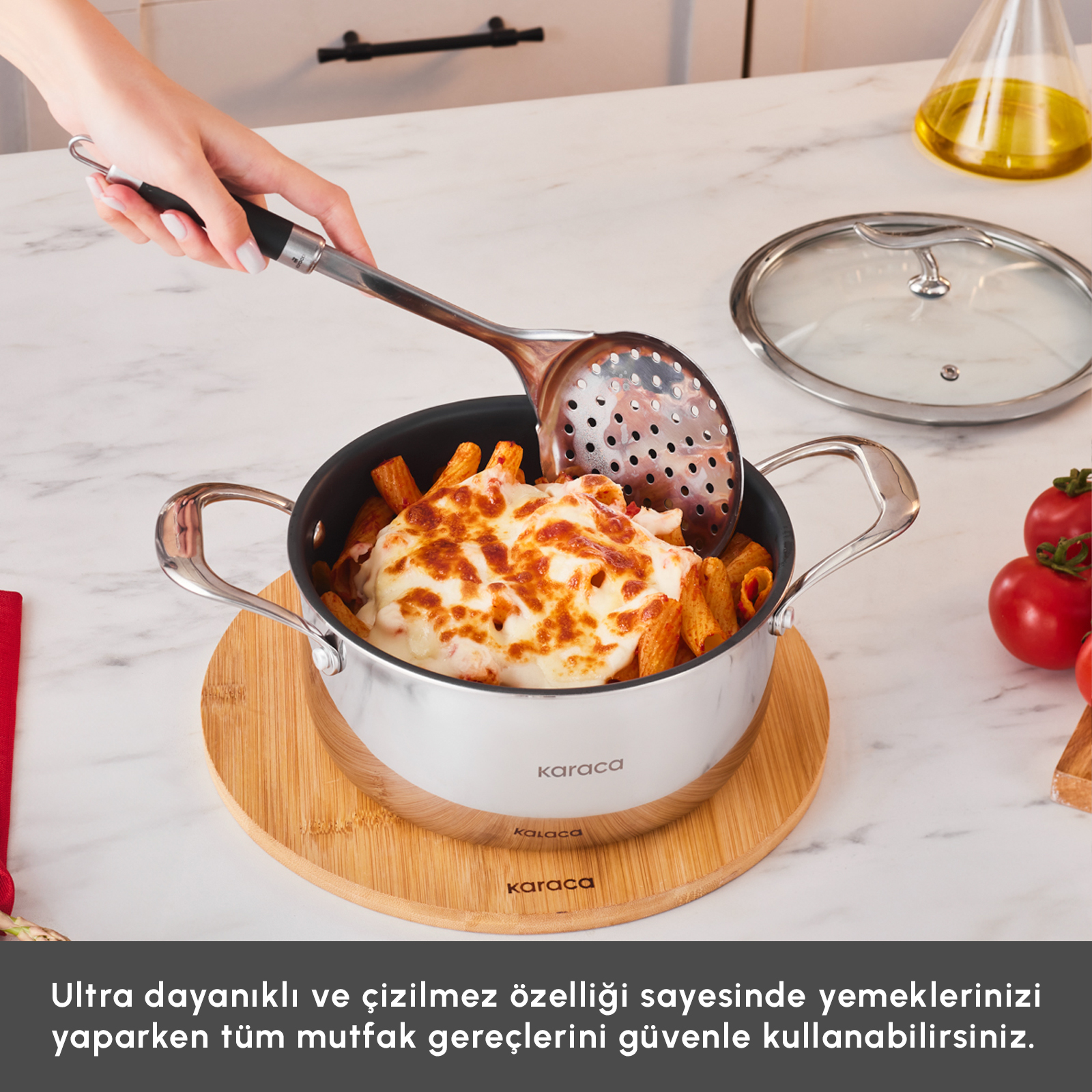 Çeliğin yapısını dönüştüren Plasma Teknolojisi ile geliştirilen Karaca Plasma Steel Ailesi, 316+ paslanmaz çelikten üretildi. Toksik madde ve PFAS içermez. Dayanıklılık, güvenli kullanım ve dengeli pişirme performansını bir araya getirir.
