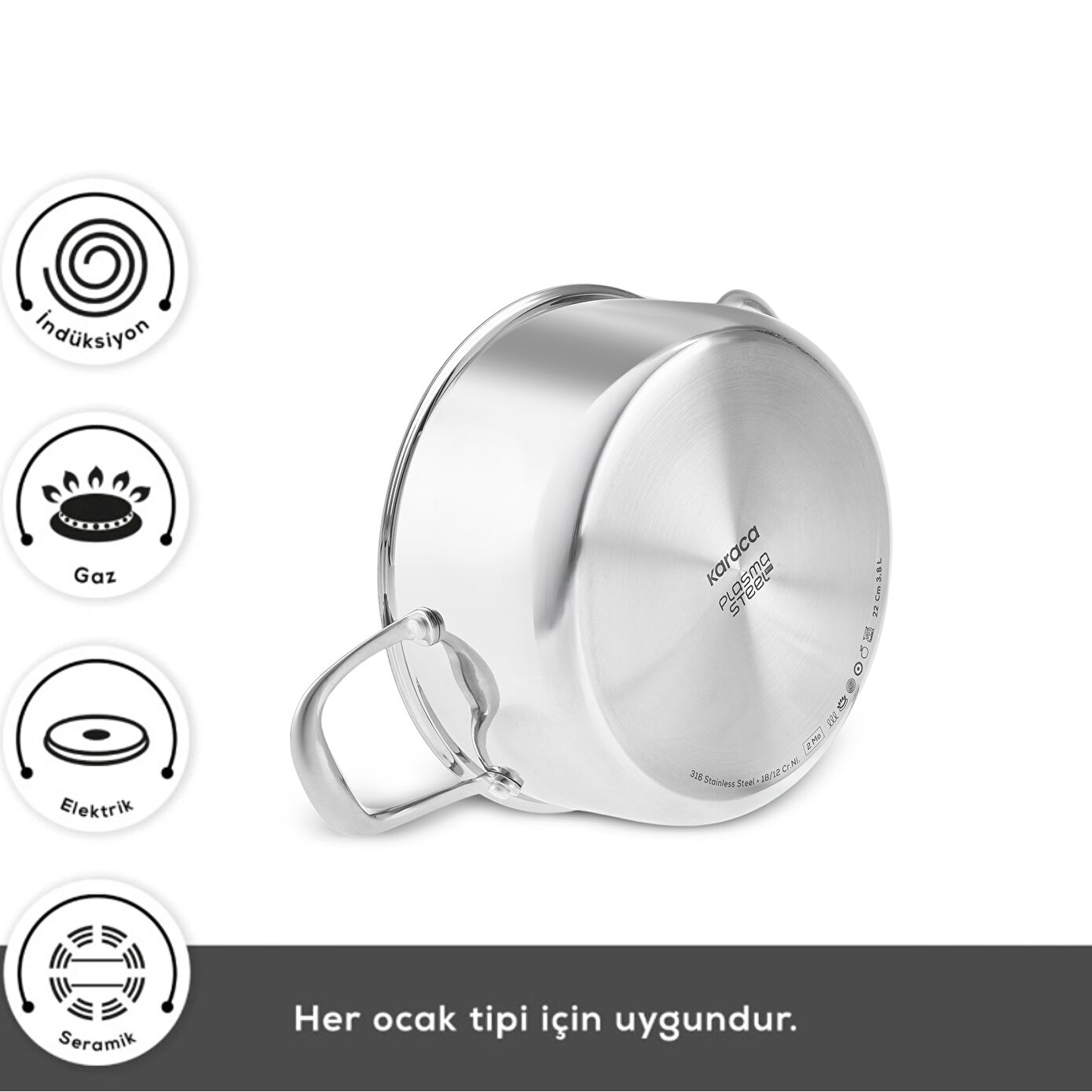 Karaca Plasma Steel 316+ 3Ply Tencere 24 cm