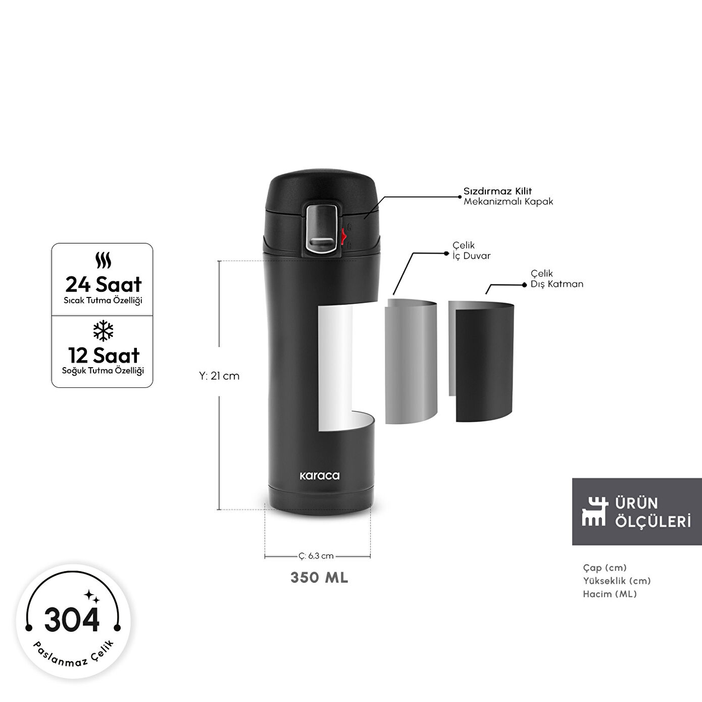 Karaca Pluton Çelik Sızdırmaz Termos 350 Ml Siyah