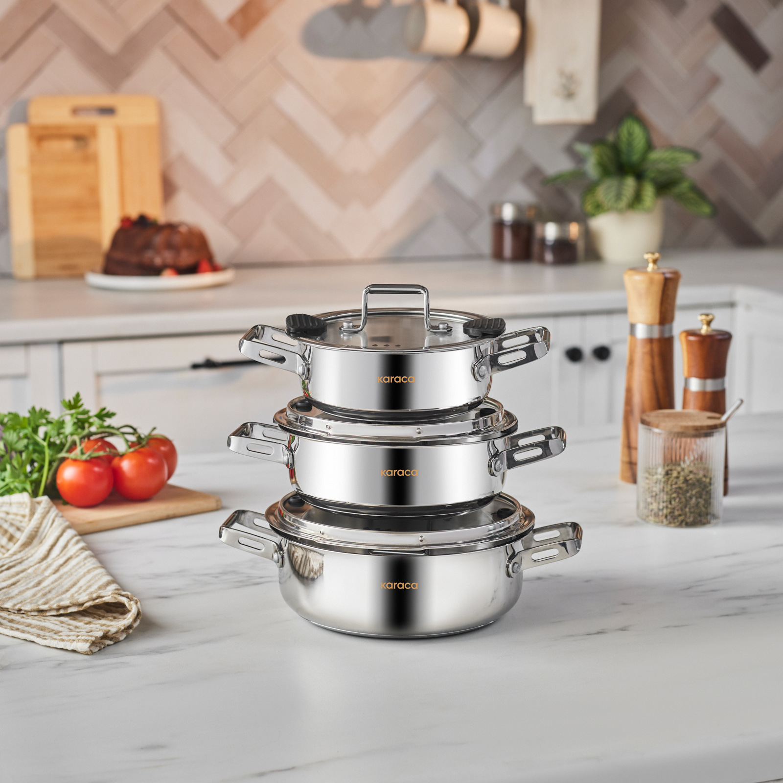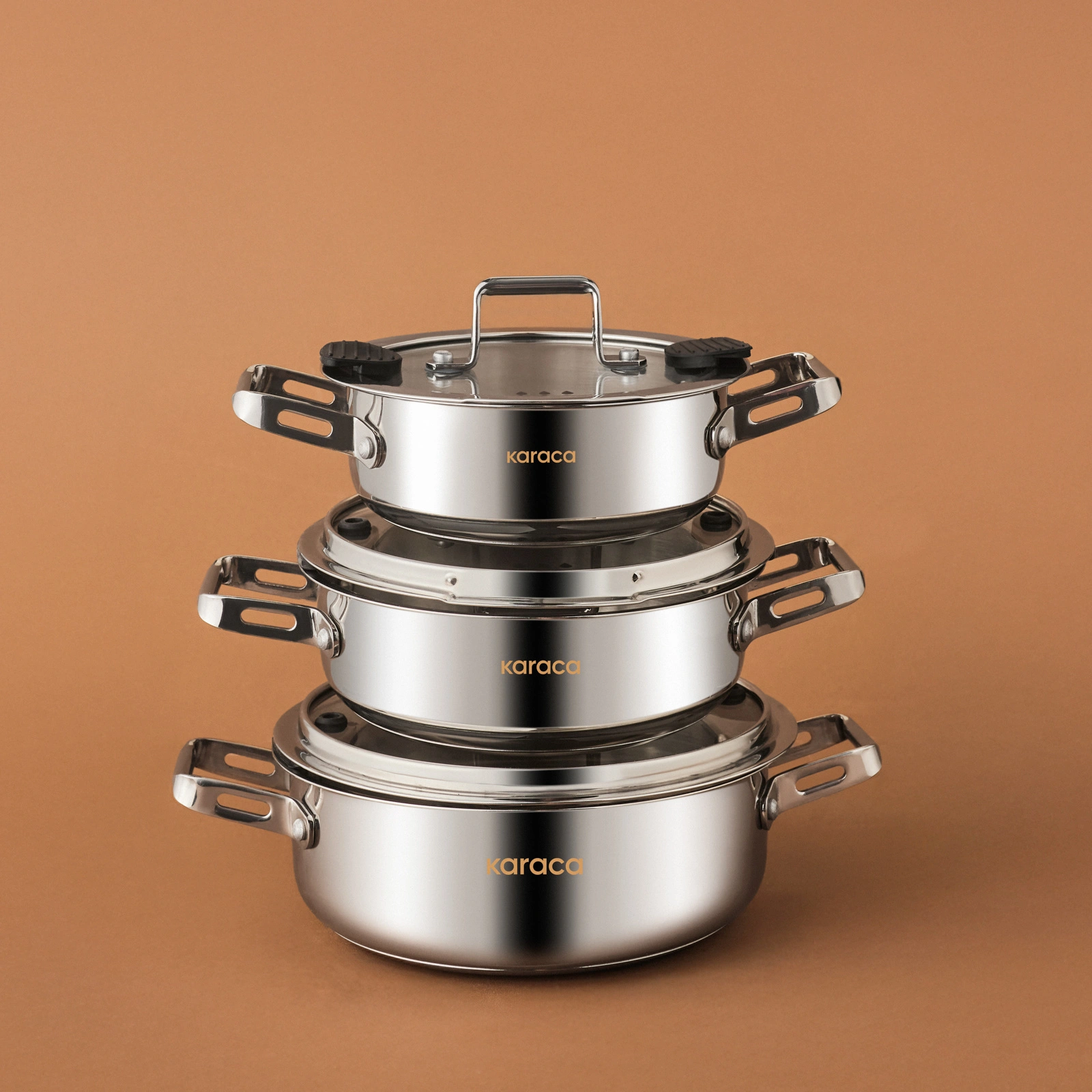 Karaca Powersteel 316+ Alberta İndüksiyon Tabanlı 6 Parça Çelik Sahan Seti