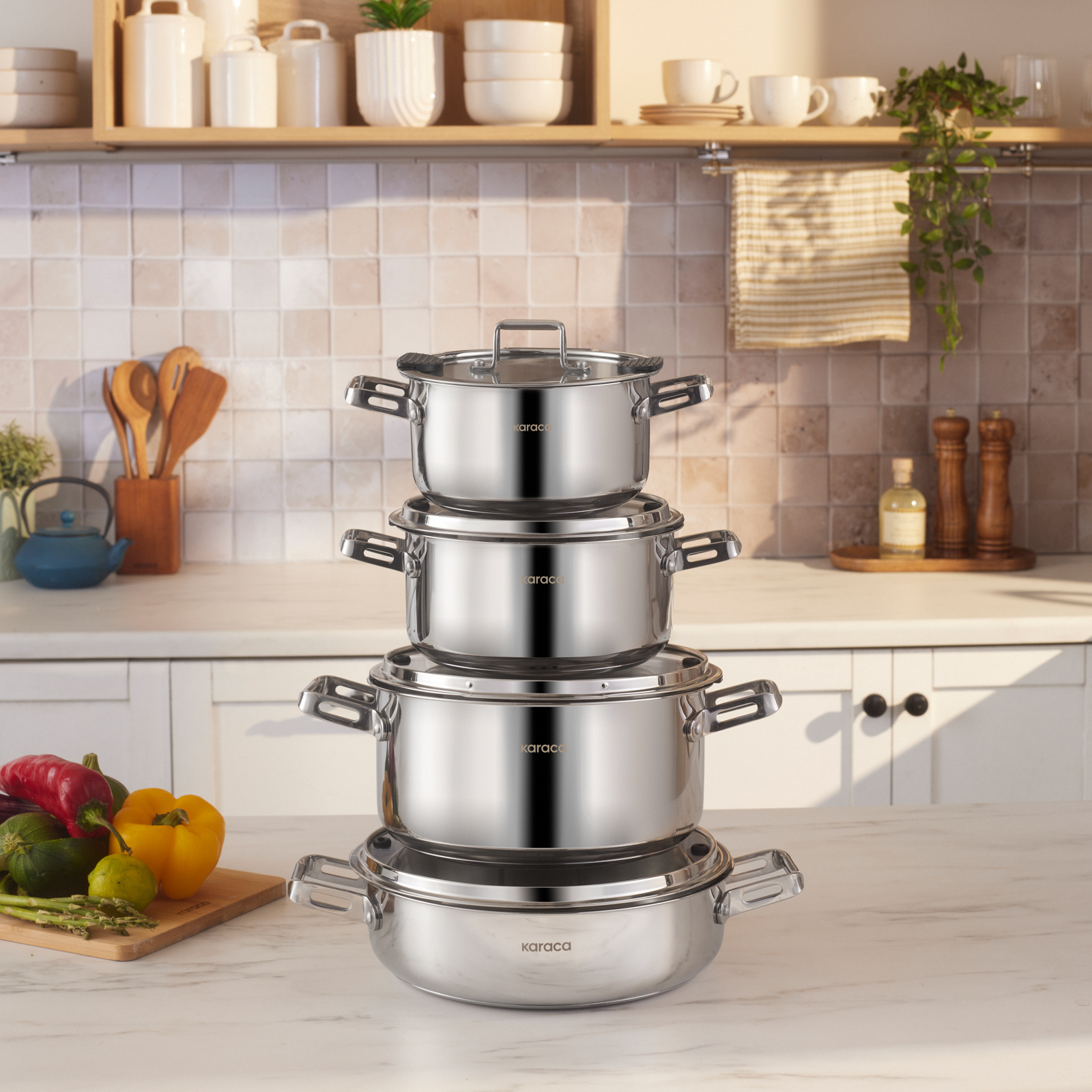 Karaca Powersteel 316+ Alberta İndüksiyon Tabanlı 8 Parça Çelik Tencere Seti
