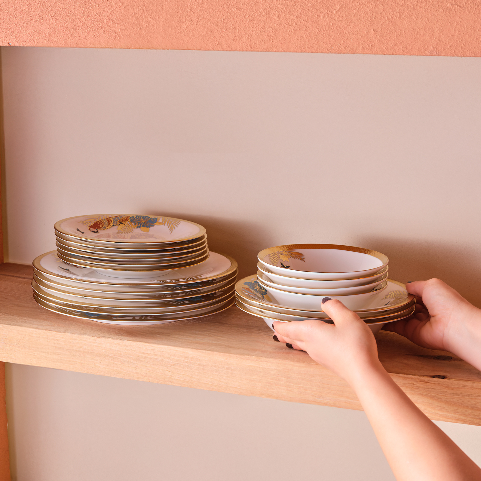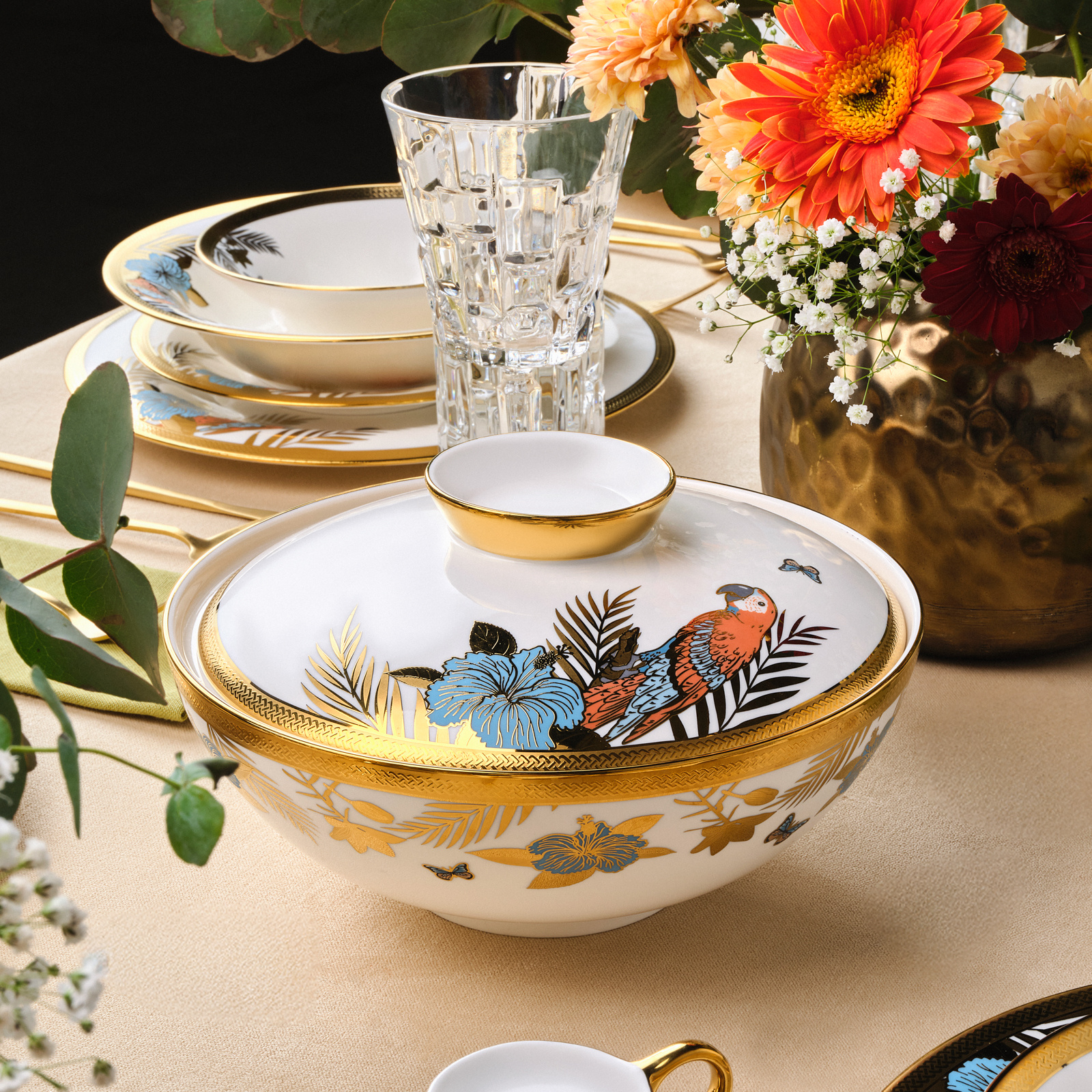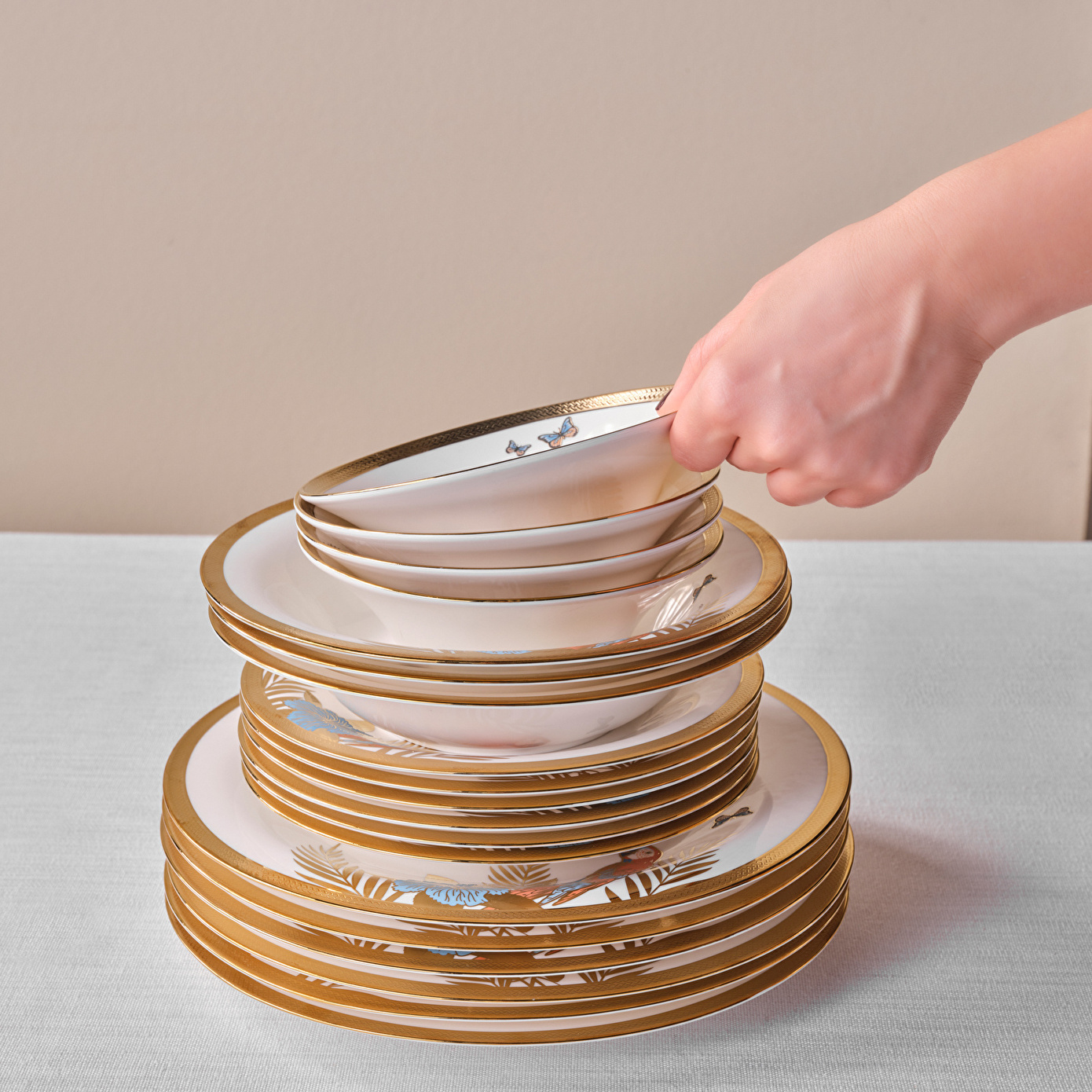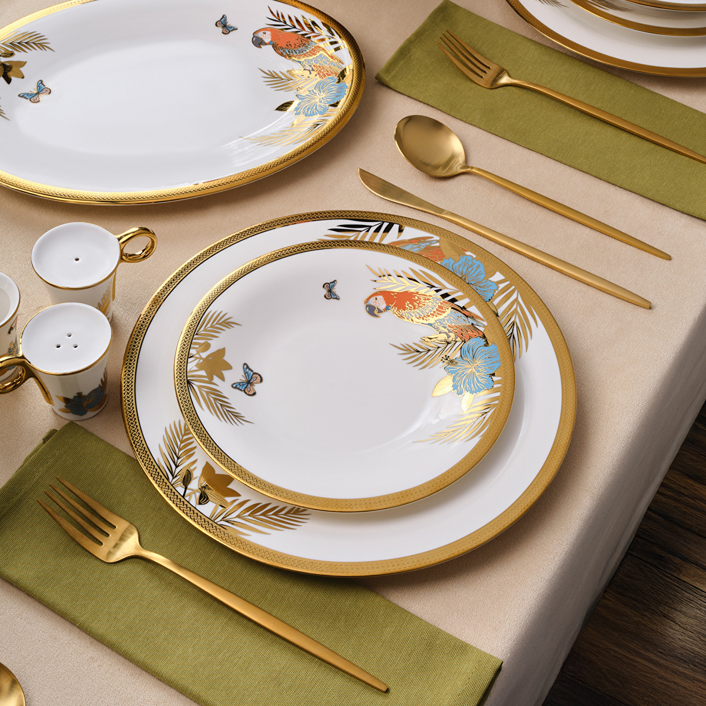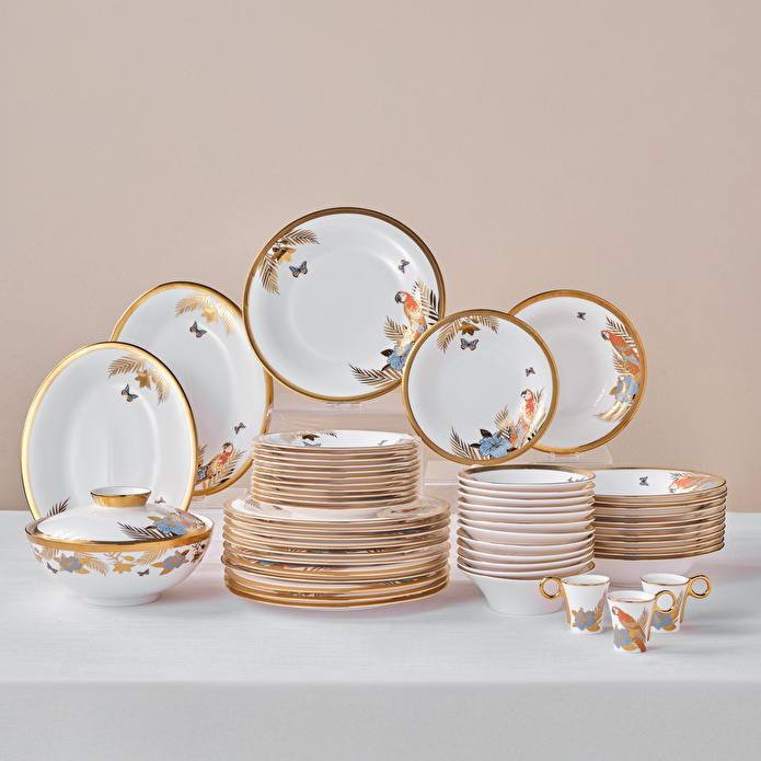 Karaca Royal Bone Golden Palms 55 Parça 12 Kişilik Yemek Takımı