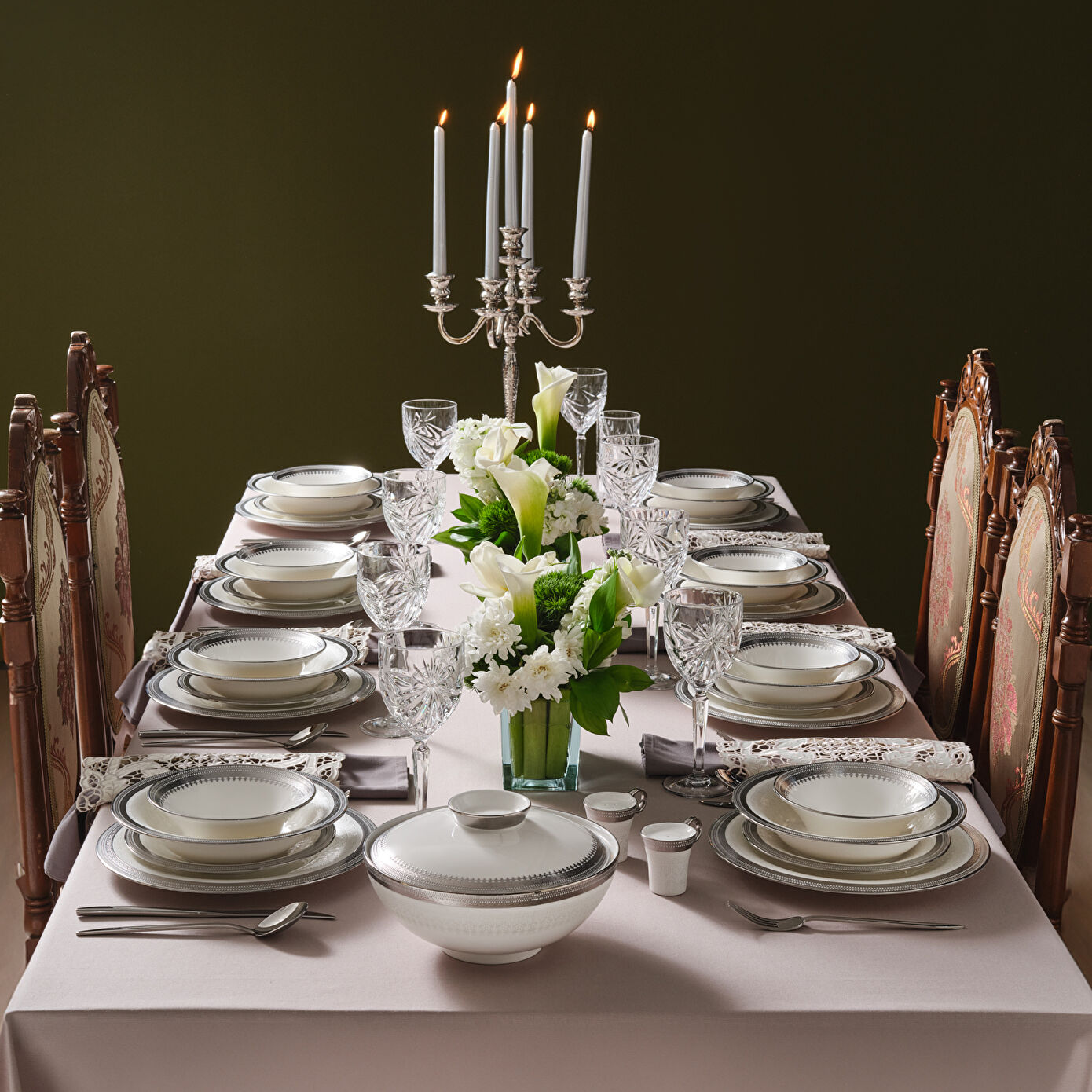 Karaca Royal Bone Kate 55 Parça 12 Kişilik Yemek Takımı Platin
