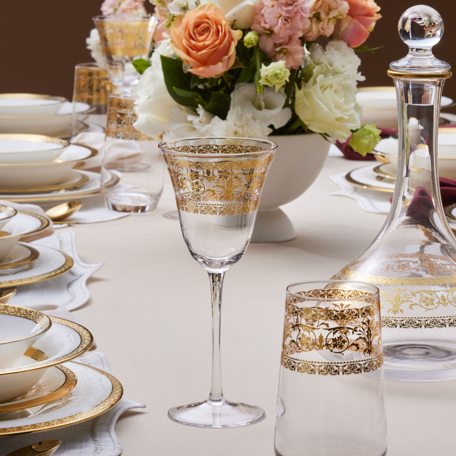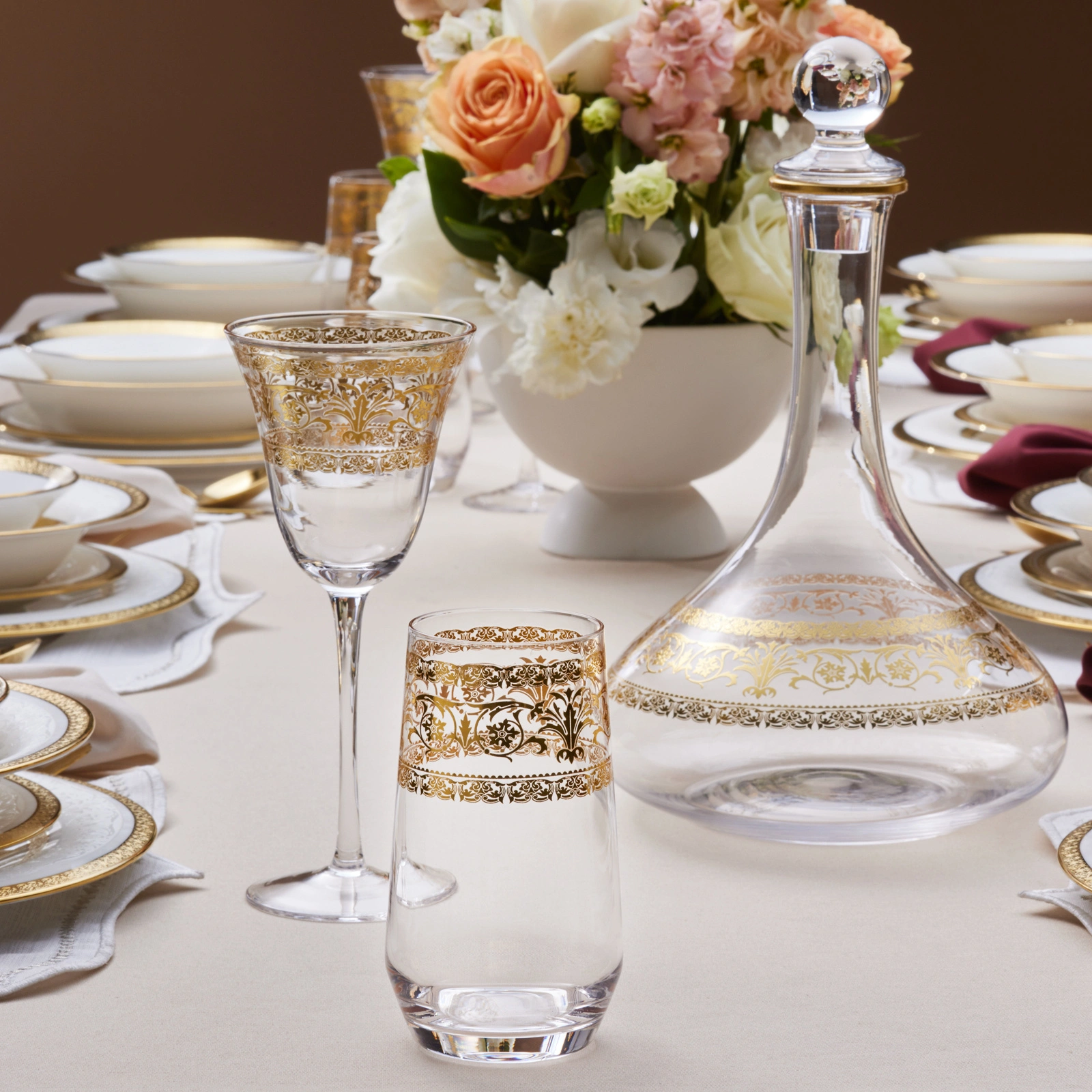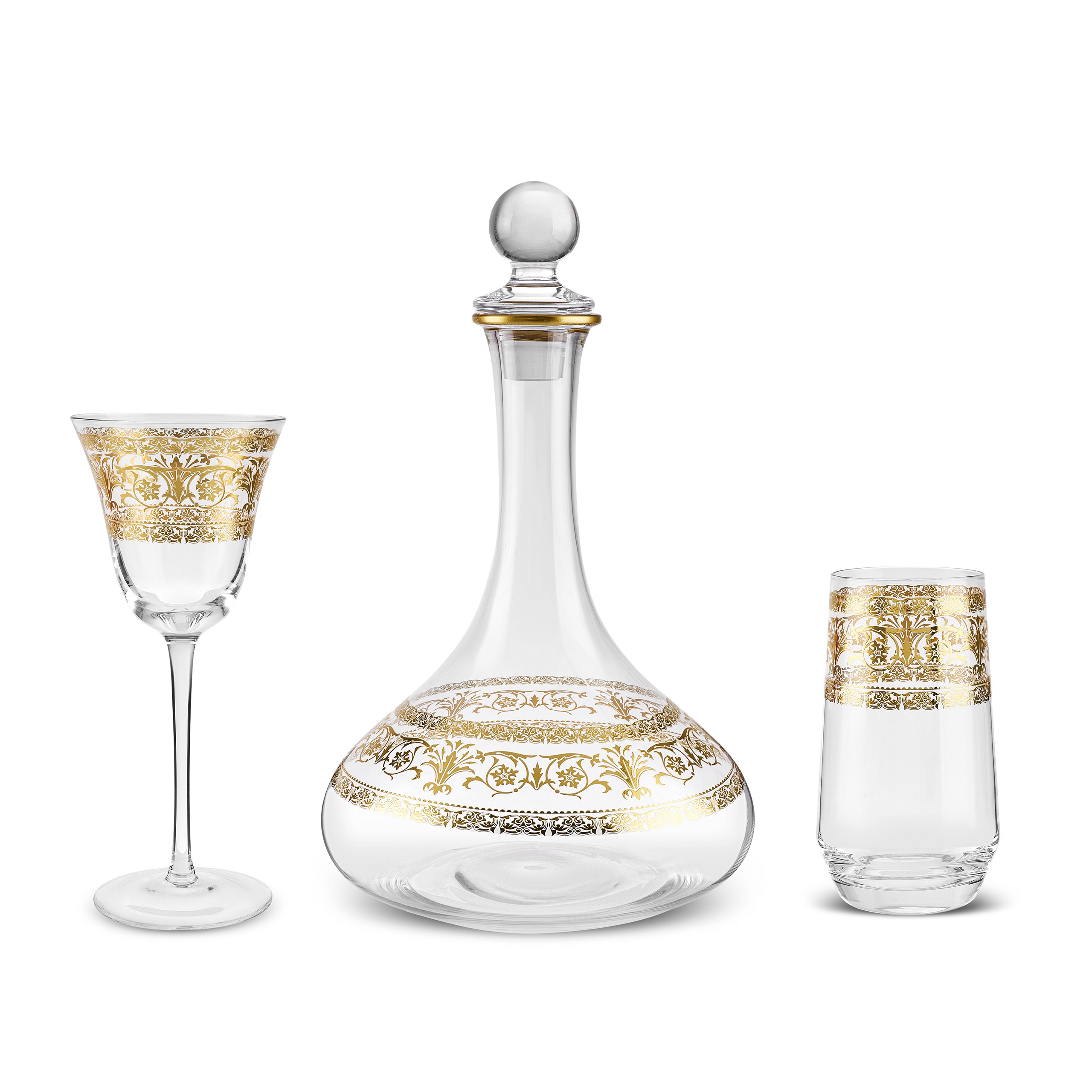 Karaca Royal Bone Victoria 25 Parça Bardak Kadeh ve Karaf Seti Gold