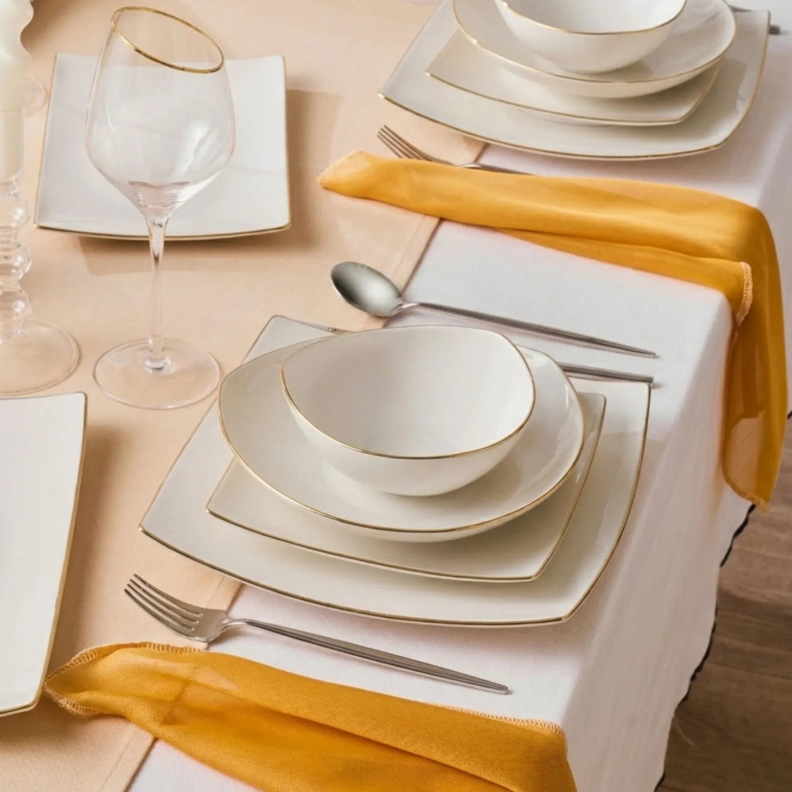 Minimal ya da gösterişli… İster desenli ister düz modelleriyle tercih edin, Square Bone yemek takımları, her tarza ve konsepte kusursuz uyum sağlar. Kare hatlarıyla güçlü bir duruş sergileyen bu özel koleksiyon, hem gündelik sofralara hem de özel davetlere sofistike bir dokunuş katar.