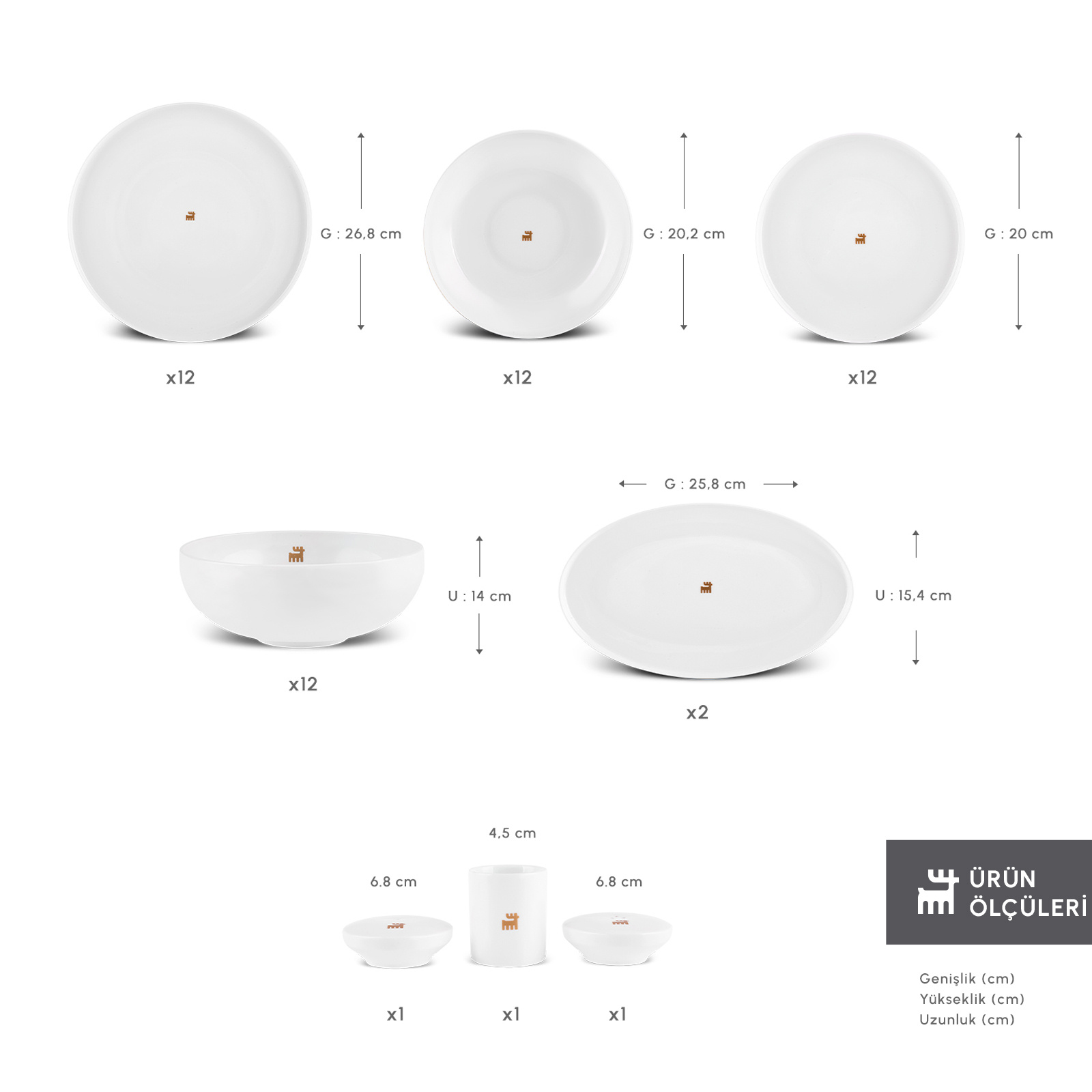12 Adet Servis Tabak Genişlik x Yükseklik 26.8 x 2.7 cm