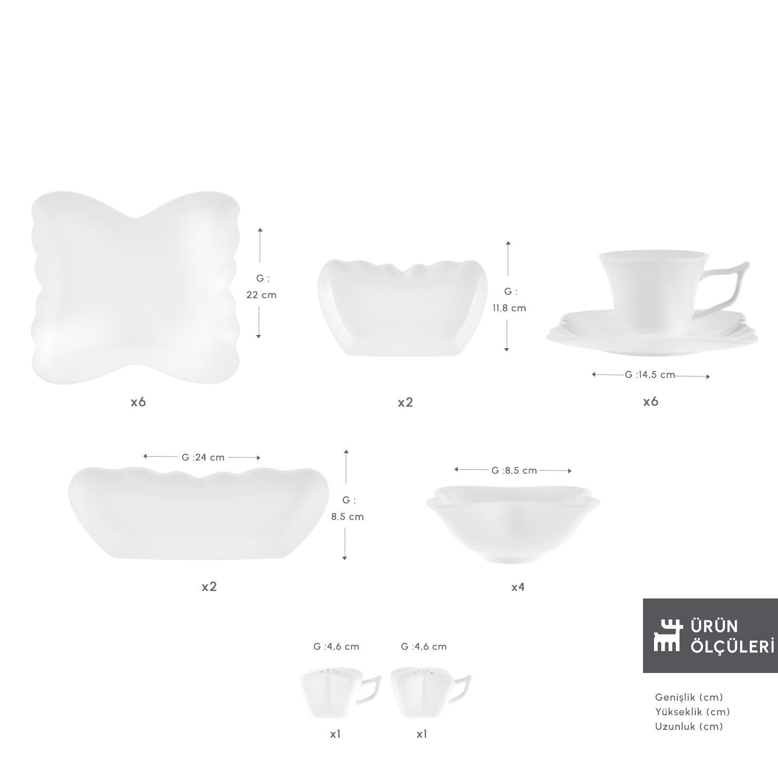 Karaca Stream Bone Pieris 34 Parça 6 Kişilik Kahvaltı Takımı