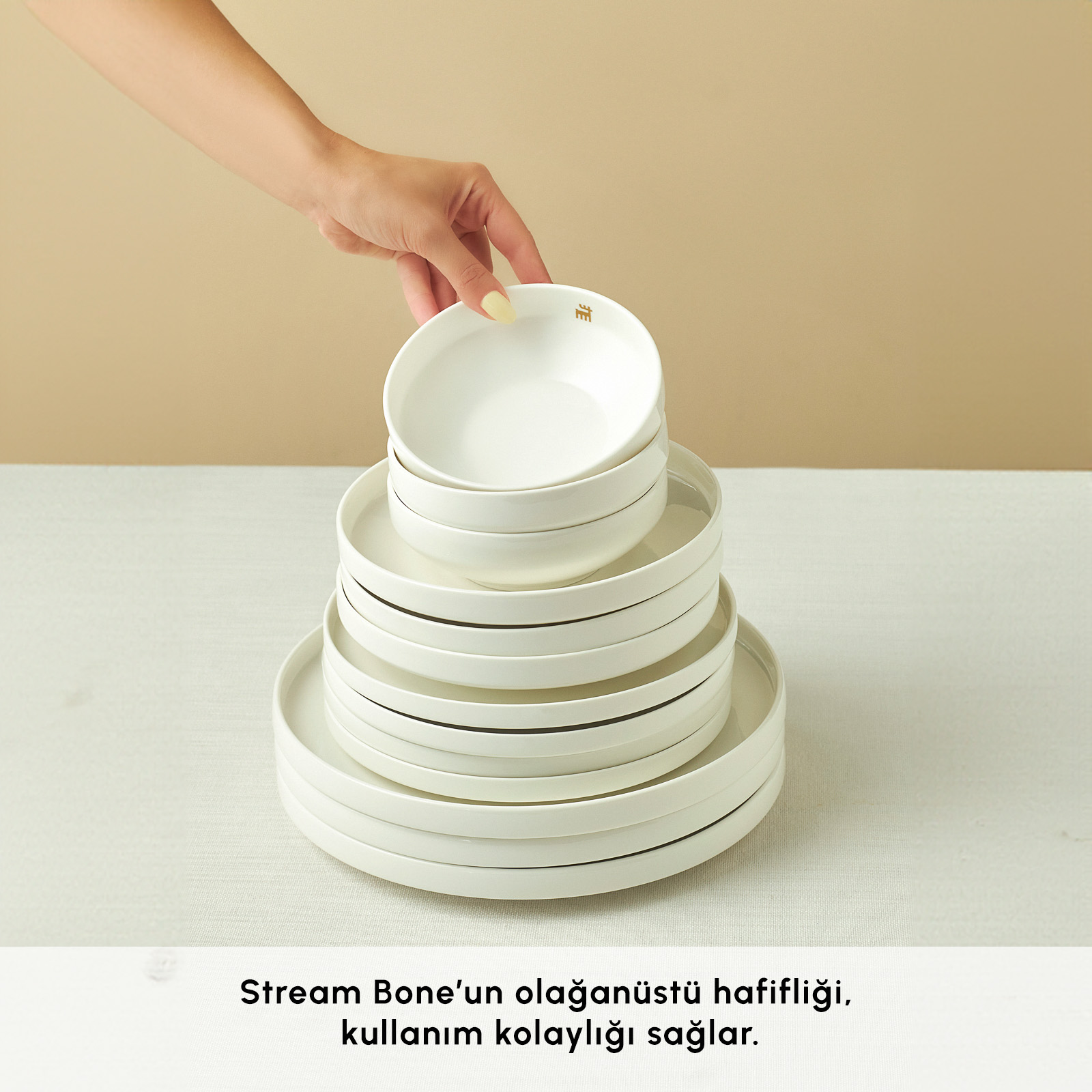 Stream Bone, zarif çizgileri ve ince yapısıyla sadece estetik bir duruş sunmakla kalmaz, aynı zamanda modern sofra sunumlarına yepyeni bir soluk getirir. Gündelik kullanımda da özel davetlerde de rahatlıkla tercih edebileceğiniz bu seri, sadeliğin içindeki dinamizmi yansıtır.