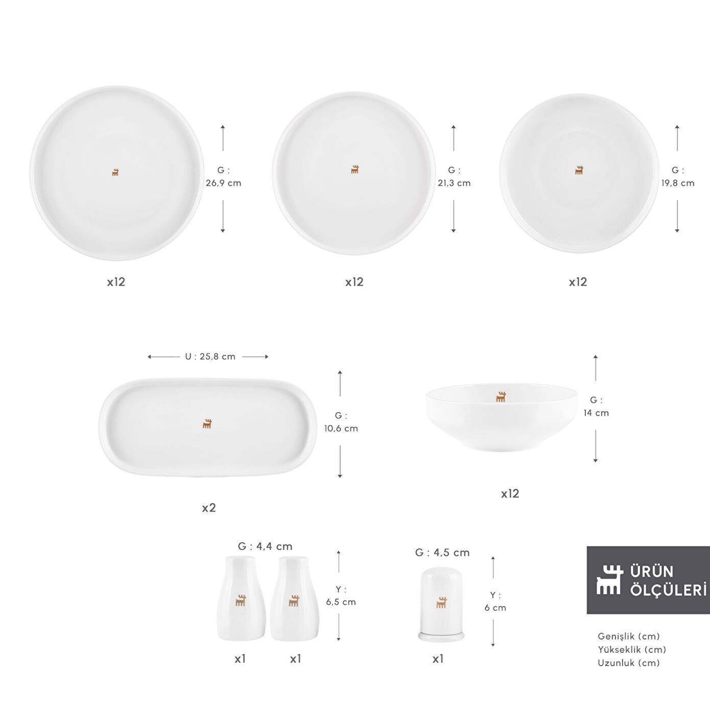 12 Adet Servis Tabak Genişlik x Yükseklik 26.9 x 3.3 cm