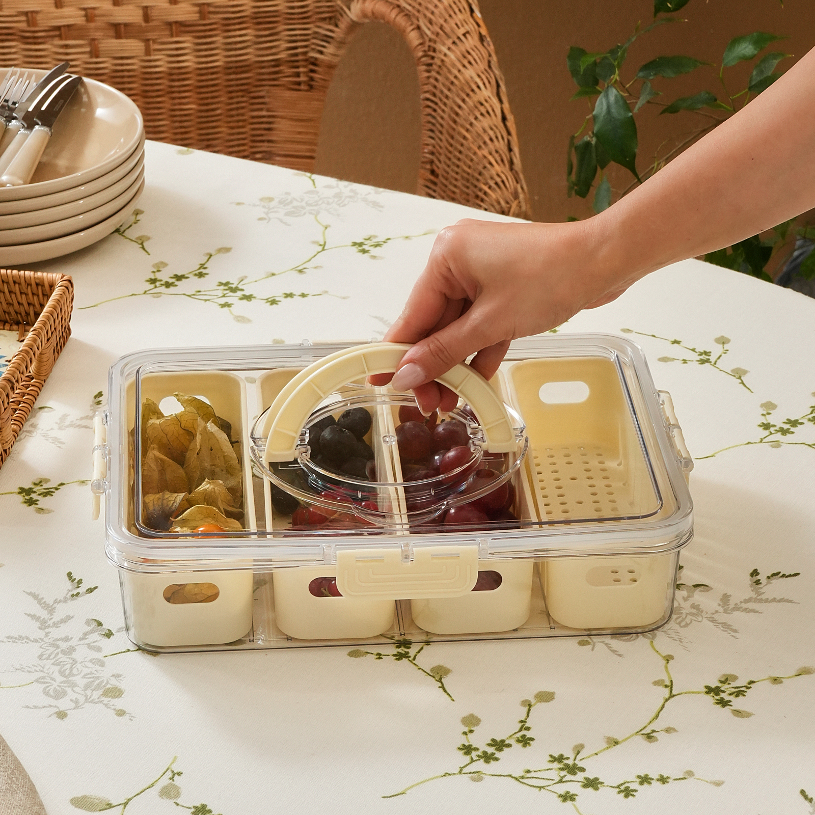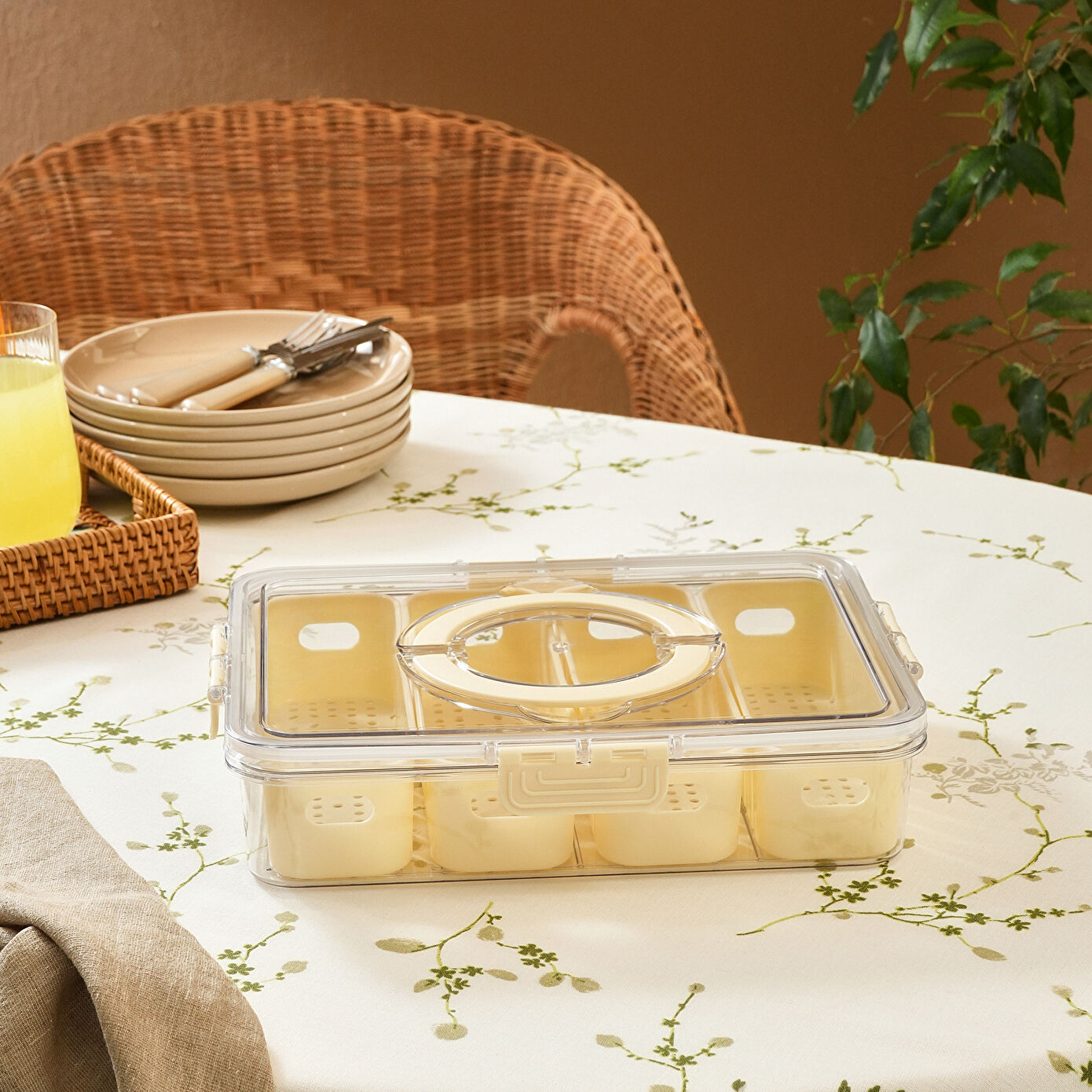 Karaca Suzi 4 Dik Bölmeli Taşınabilir Dikdörtgen Saklama Kabı