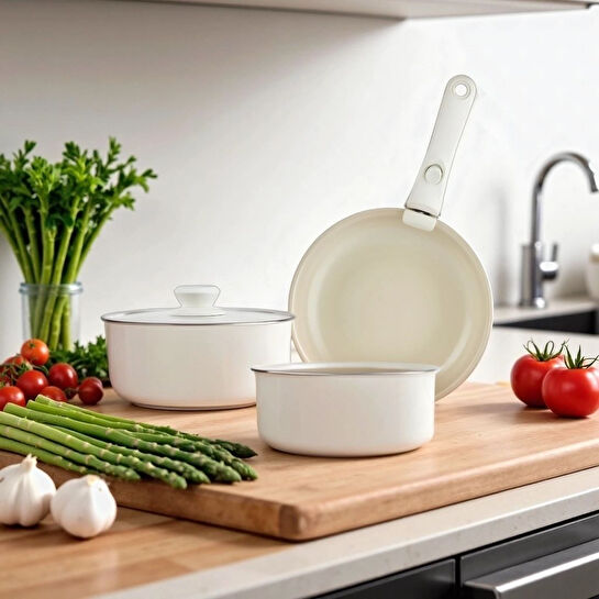 Karaca x Refika Swiss Crystal Almond Cream Easy Clip 5 Parça Tencere Seti