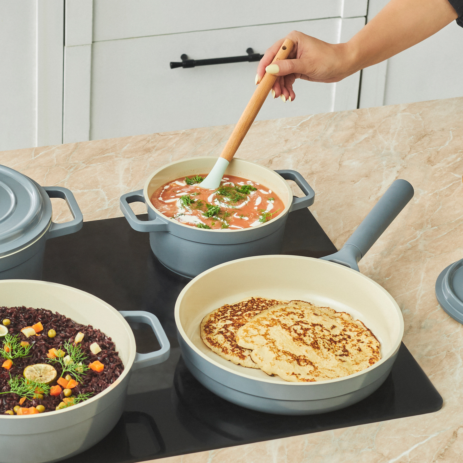 Sıfır Yağ: SwissCrystal Tencere Seti’nin üstün yapışmaz yüzeyi sayesinde sıfır yağda bile; pankek, pilav, yumurta, balık ve tavuk gibi birçok lezzeti yapışmadan, pratik bir şekilde pişirebilirsiniz.