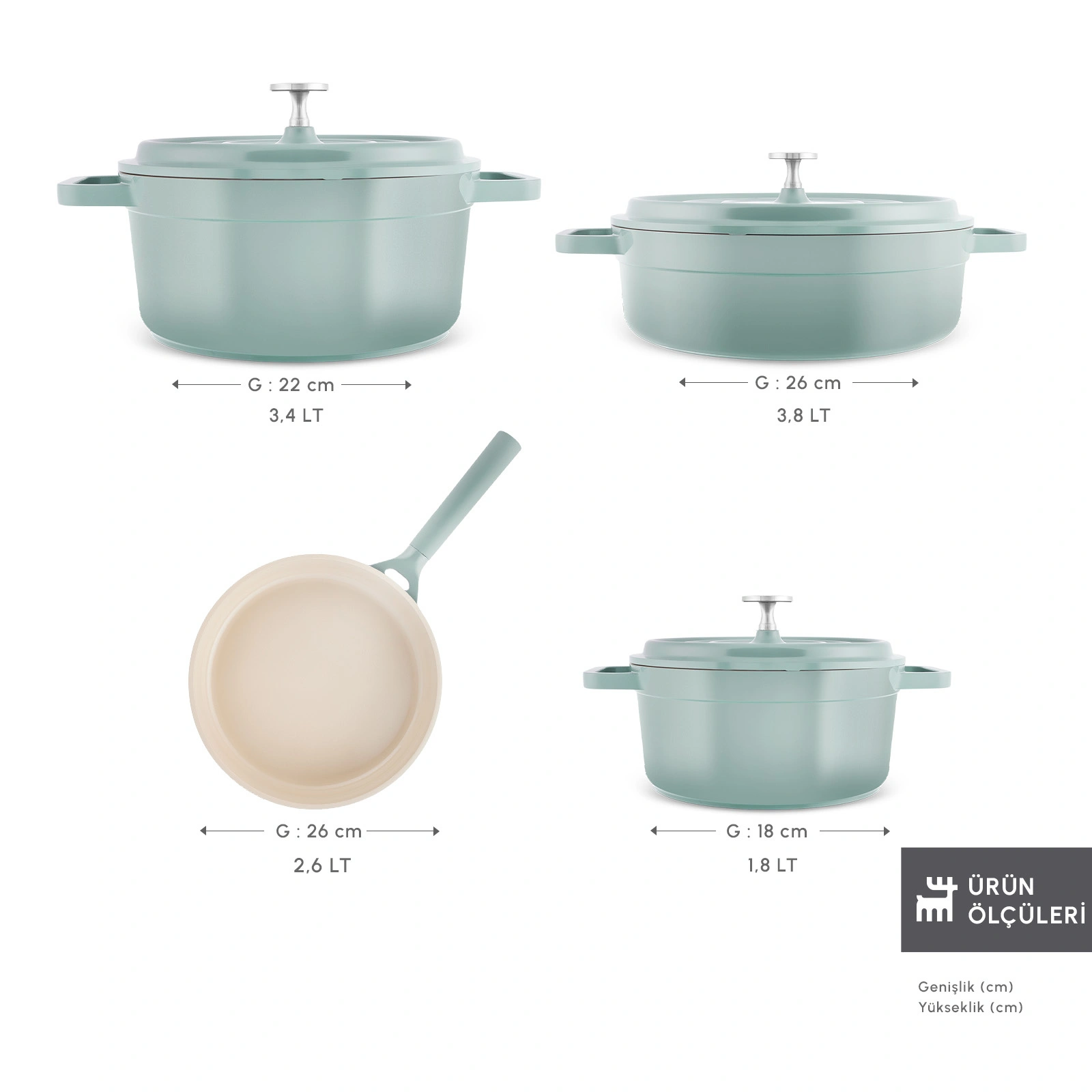 - 18 cm tencere : 1,8 L