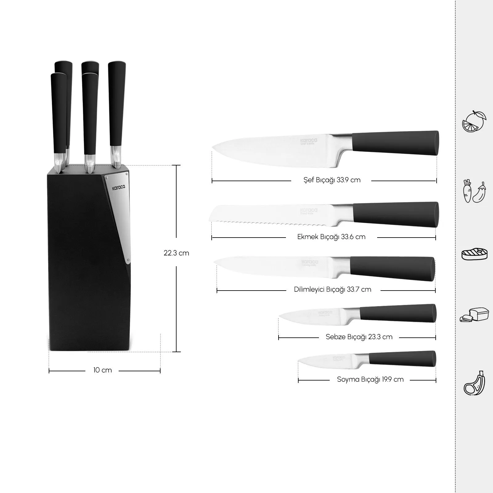 Karaca Samuray Thor New Japon Çeliği 6 Parça Bıçak Seti Siyah