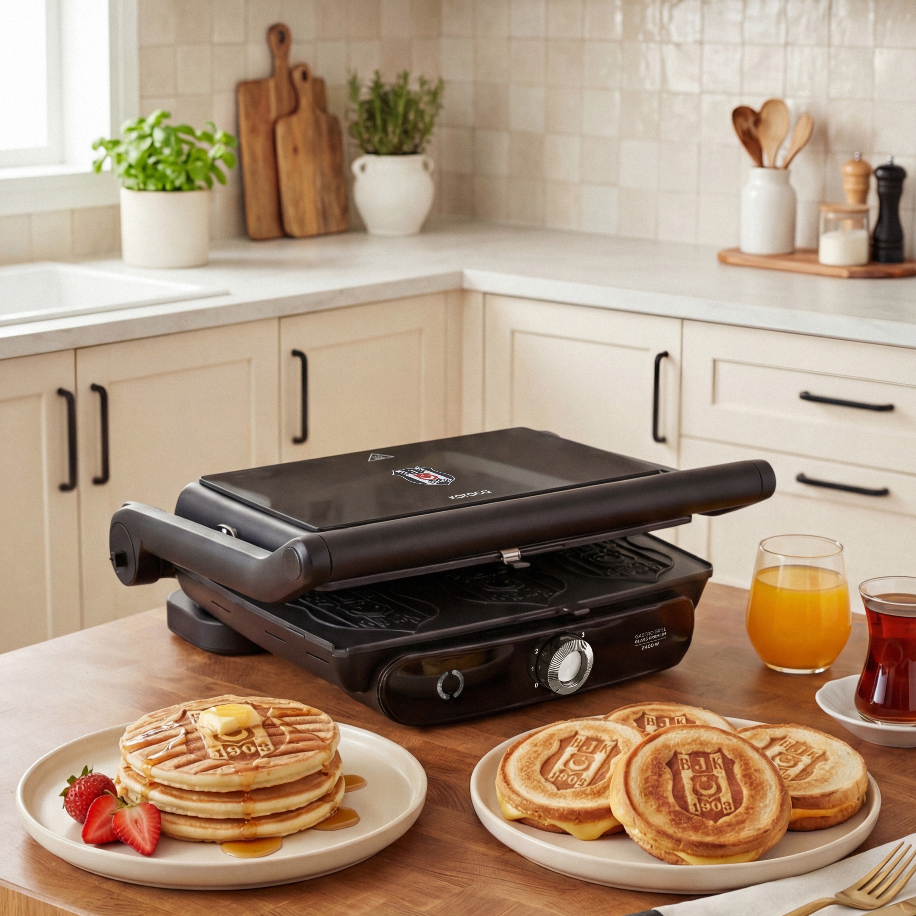 Özel tasarımlı plakaları sayesinde tostlarınıza Beşiktaş logosu basılır. Her tost, takımınıza olan bağlılığınızı sofraya taşıyan eşsiz bir deneyime dönüşür.