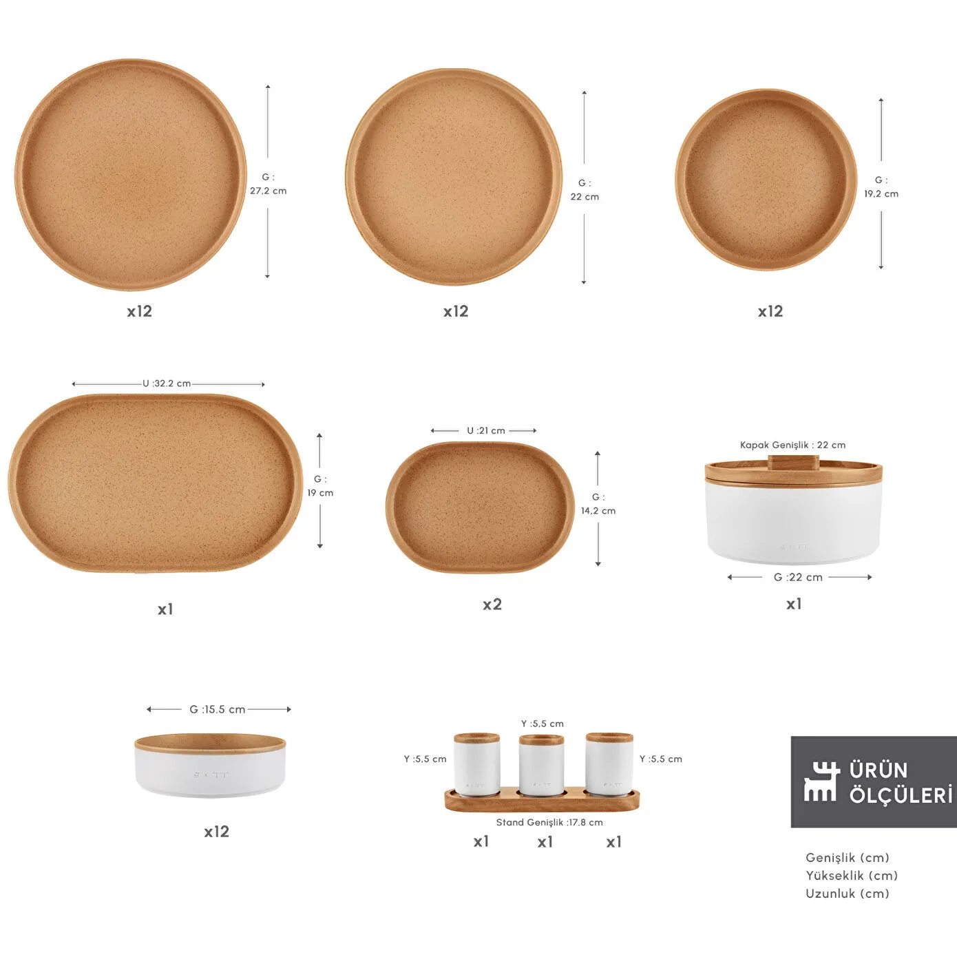 - 12 Adet Servis Tabak Genişlik x Yükseklik 27.2 x 2.4 cm