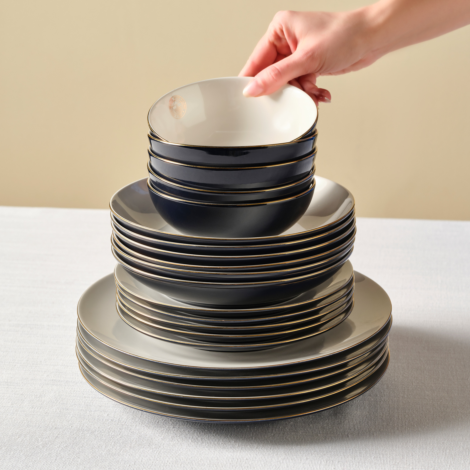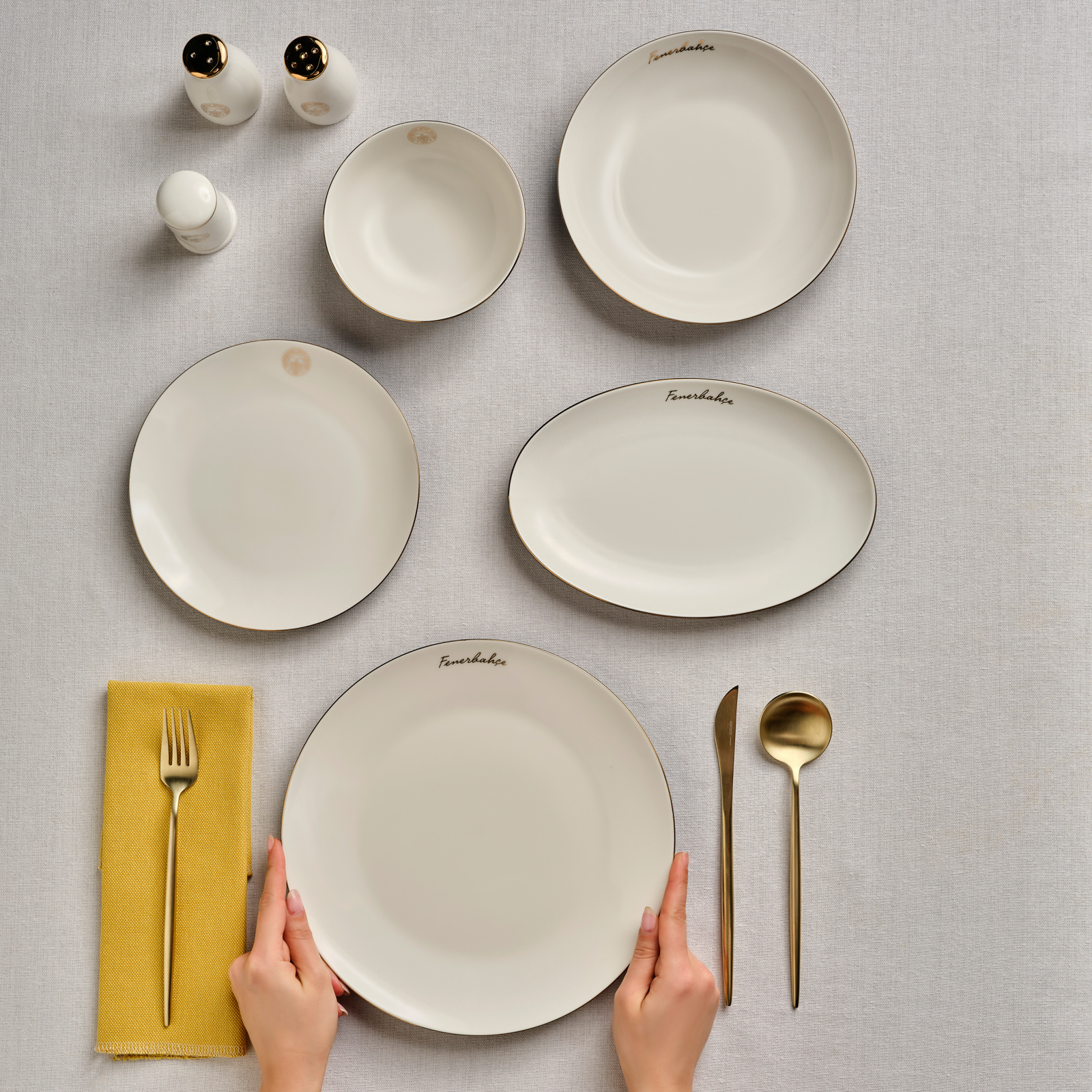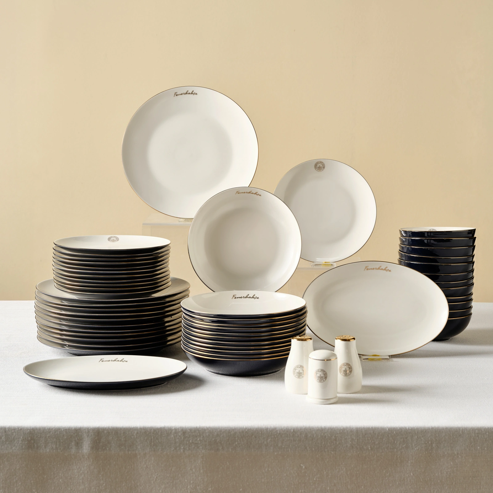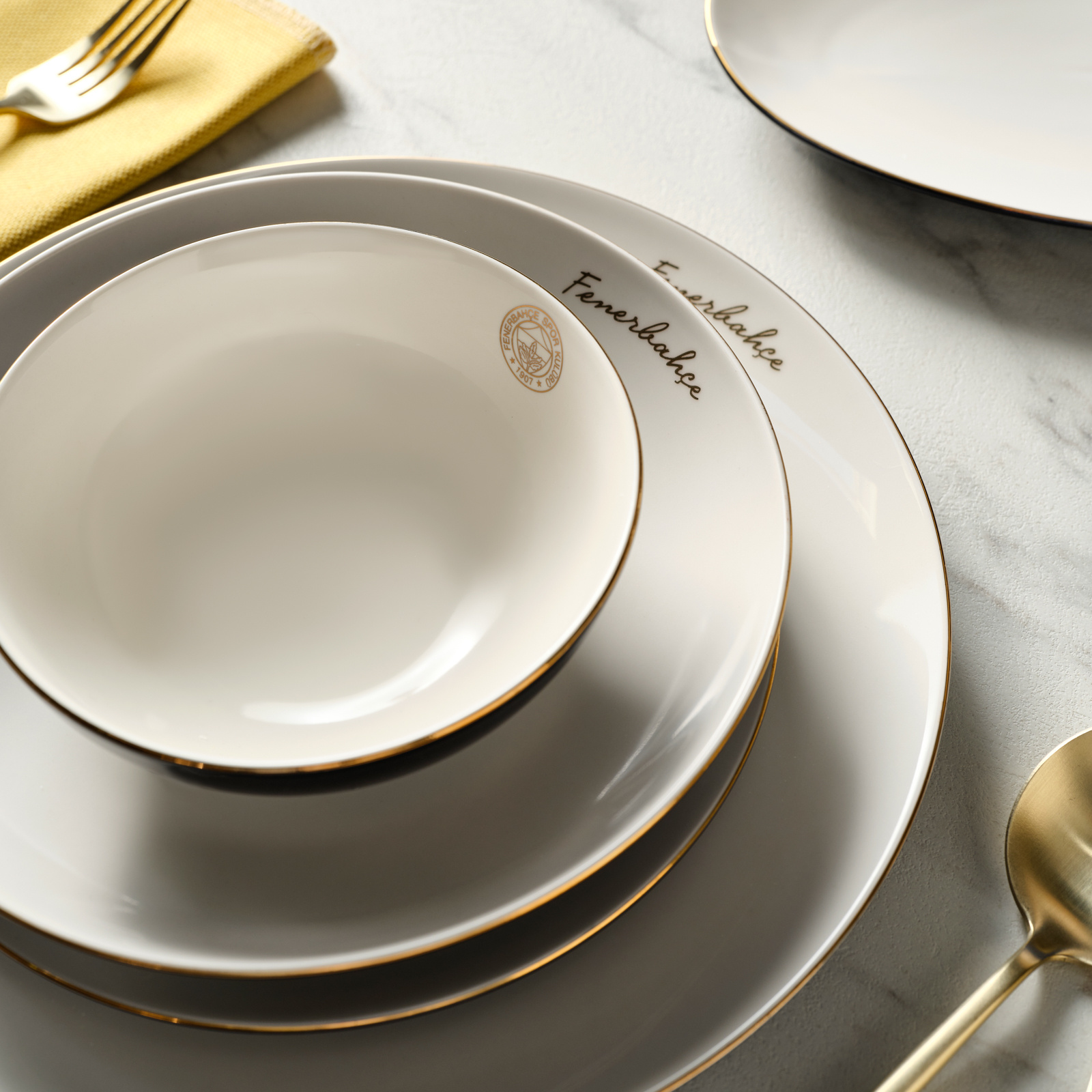 Karaca x Fenerbahçe Lisanslı Elegance Bone Gold 53 Parça Yemek Takımı