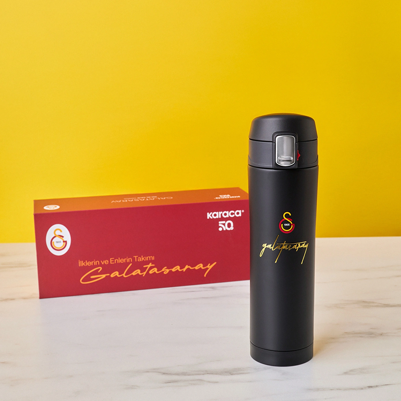 Takımını her yerde yanında taşımak isteyenler için tasarlanan Karaca x Galatasaray Çelik Sızdırmaz Termos günlük kullanımı taraftar tutkusu ile buluşturuyor. Şık tasarımı, dayanıklı çelik yapısı ve sızdırmaz kapak sistemiyle; ister ofiste ister okulda ister yolda, içeceğini güvenle yanında taşımanı sağlar.