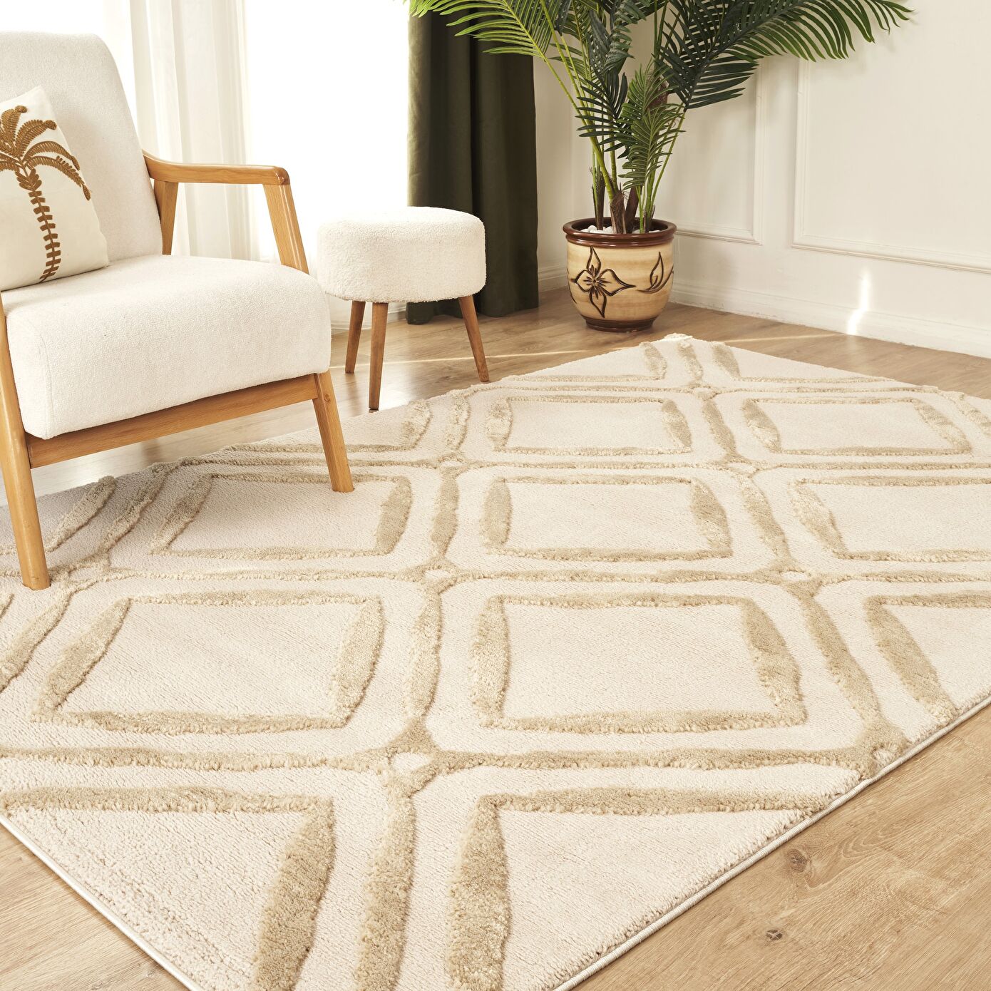 Kaşmir Halı 7/24 Plushy Doha Bej 50x80 cm