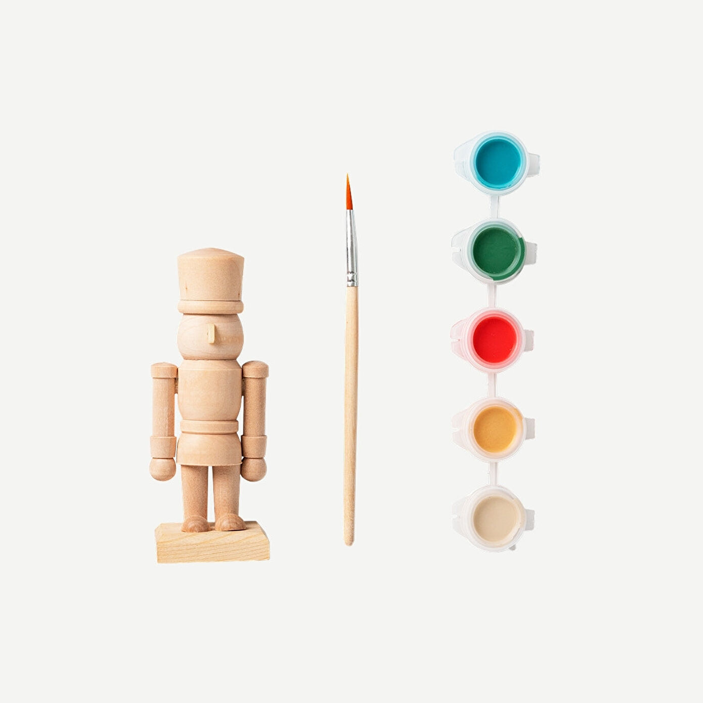 Yılbaşı el işlerinize klasik ve nostaljik bir dokunuş katın! Bu Kendin Yap Fındıkkıran figürü, kendi zevkine göre boyayıp kişiselleştirebileceğin harika bir yılbaşı projesi. Ahşaptan üretilen bu ikonik figür, 3,4 x 10 x 3,6 cm ölçülerindedir ve yanında gelen küçük boya kaplarıyla yaratıcılığı her fırça darbesine taşır.