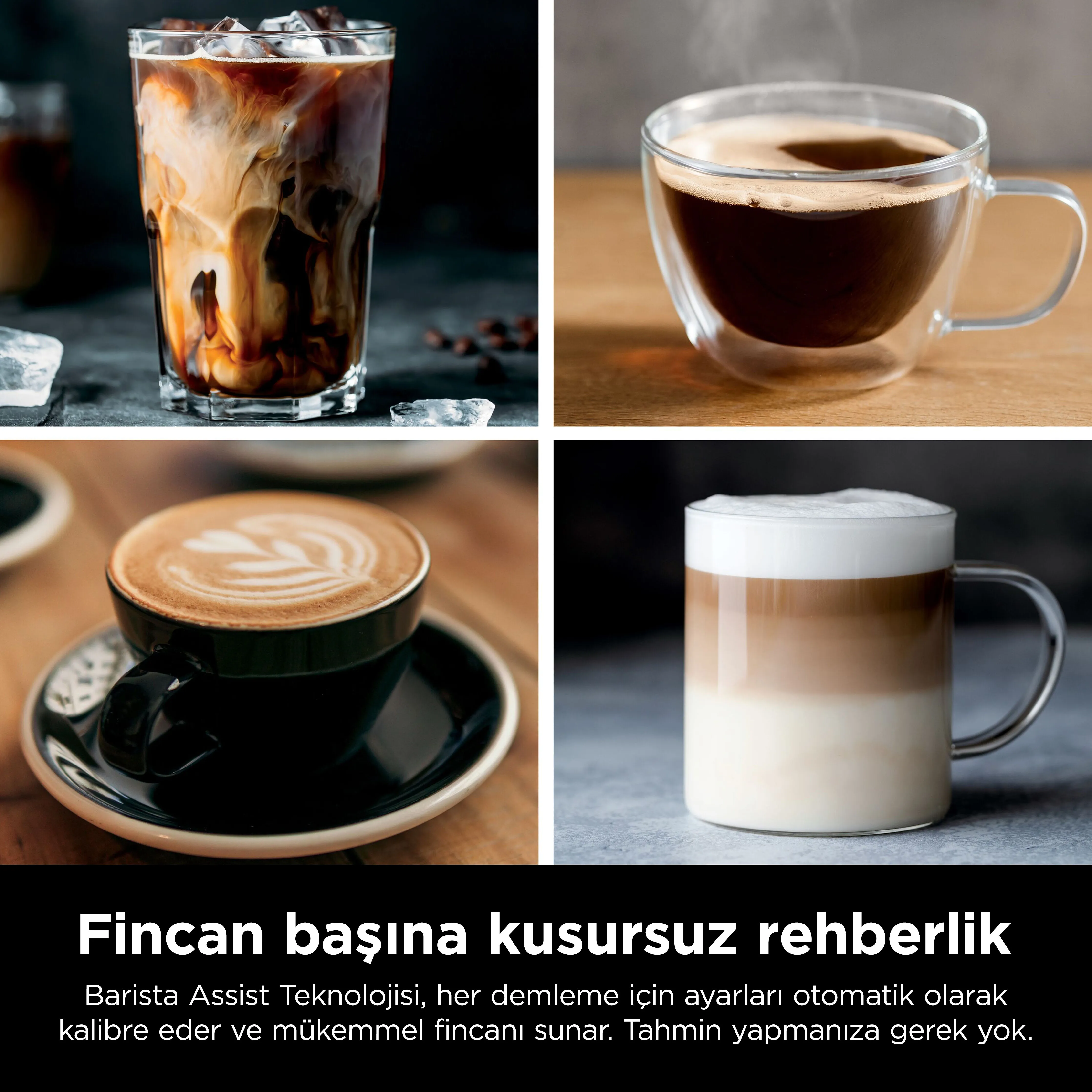 Barista Assist teknolojisi: Seçtiğiniz kahve türüne göre doğru öğütme boyutunu önerir ve ihtiyacınız olan miktarı otomatik olarak öğütür.