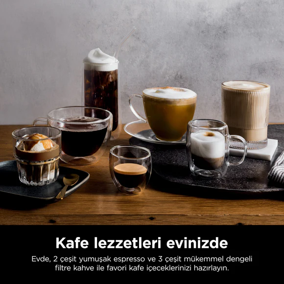 Espresso makinesi: Tek başına veya cappuccino, latte, Americano gibi tariflerin temelinde kullanılacak yoğun shot’lar hazırlayın.