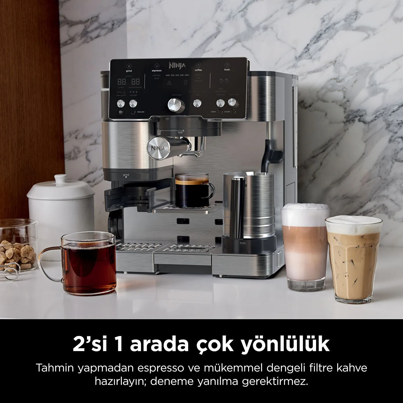 Bu çok yönlü 2’si 1 arada makine, espresso ve filtre kahveyi tek cihazda sunar. Dahili kahve öğütücüsü ve hassas ayarlarıyla, kahvenizi tam istediğiniz gibi hazırlamanızı kolaylaştırır.