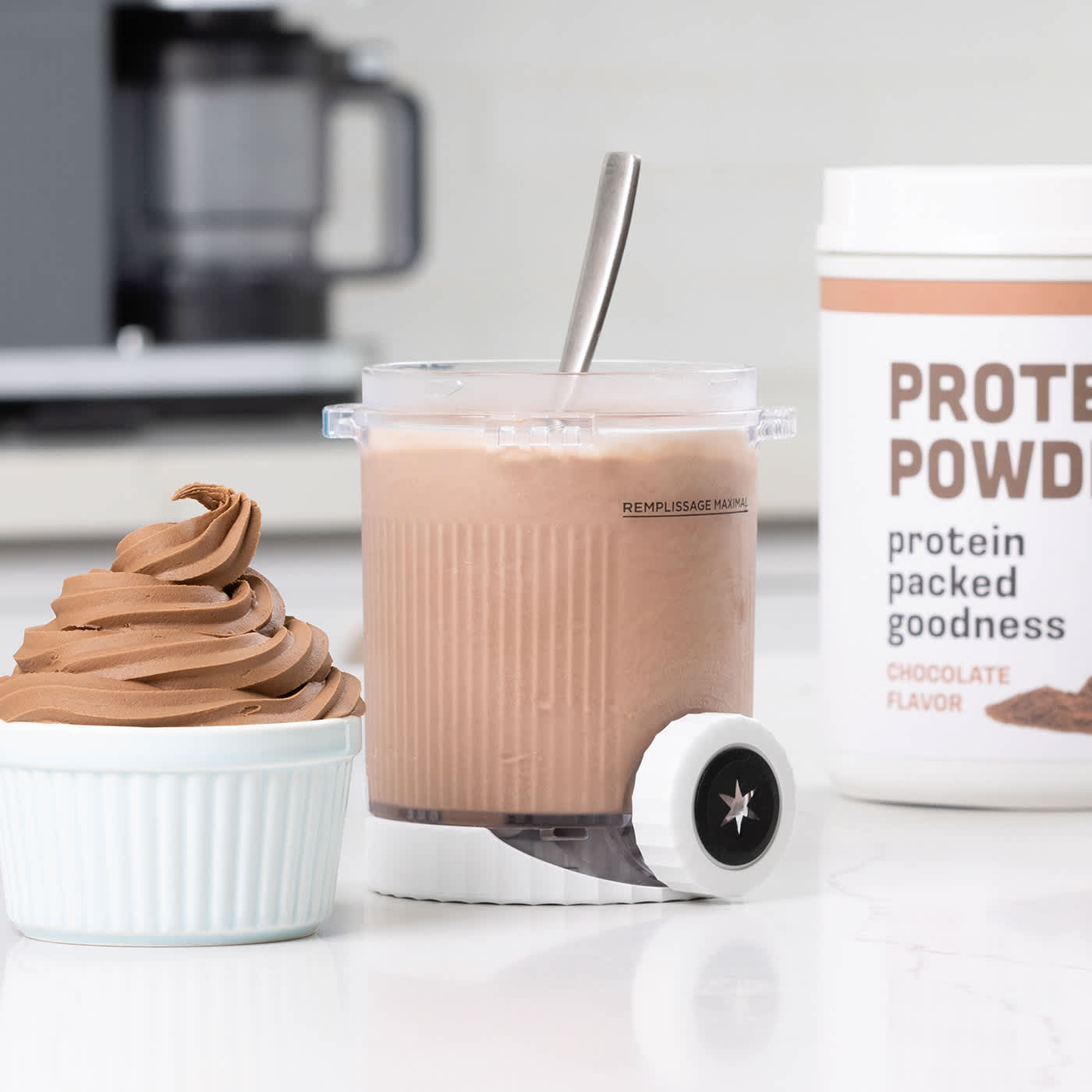Konserve meyve veya süt alternatifi ile her zaman hızlı milkshake, protein dondurması ve soft serve hazırlayabilirsiniz. Ek hazneler satın alarak aileniz veya ev halkınız için ideal bir çözüm yaratabilirsiniz.