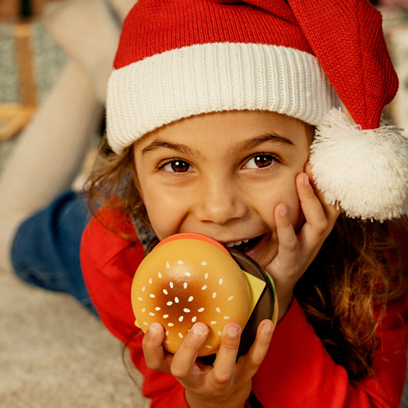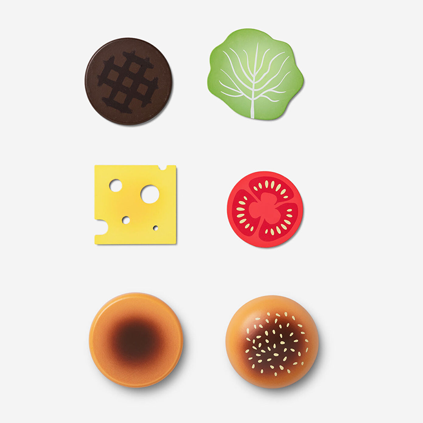 Bu sevimli hamburger yapma oyuncağı, çocukların kendi hamburgerlerini yaratmalarına olanak tanıyan altı ahşap parçadan oluşur. Çok renkli tasarımı ile bu oyuncak hamburger, hayal gücünü teşvik ederek çocukların malzemeleri karıştırıp eşleştirmeleri için mükemmeldir. Ekmeğin üst kısmı 2.5 cm x 8 cm boyutlarındadır, bu da onu küçük eller için ideal boyut yapar. İster oyun mutfağı eğlencesi, ister rol yapma macerası için olsun, bu ahşap oyuncak her çocuğun oyun etkinliklerine harika bir eklemektedir. Çocuğunuzun bu keyifli ahşap setle sonsuz saatlerce hayal gücü dolu oyun oynamasını sağlayın.