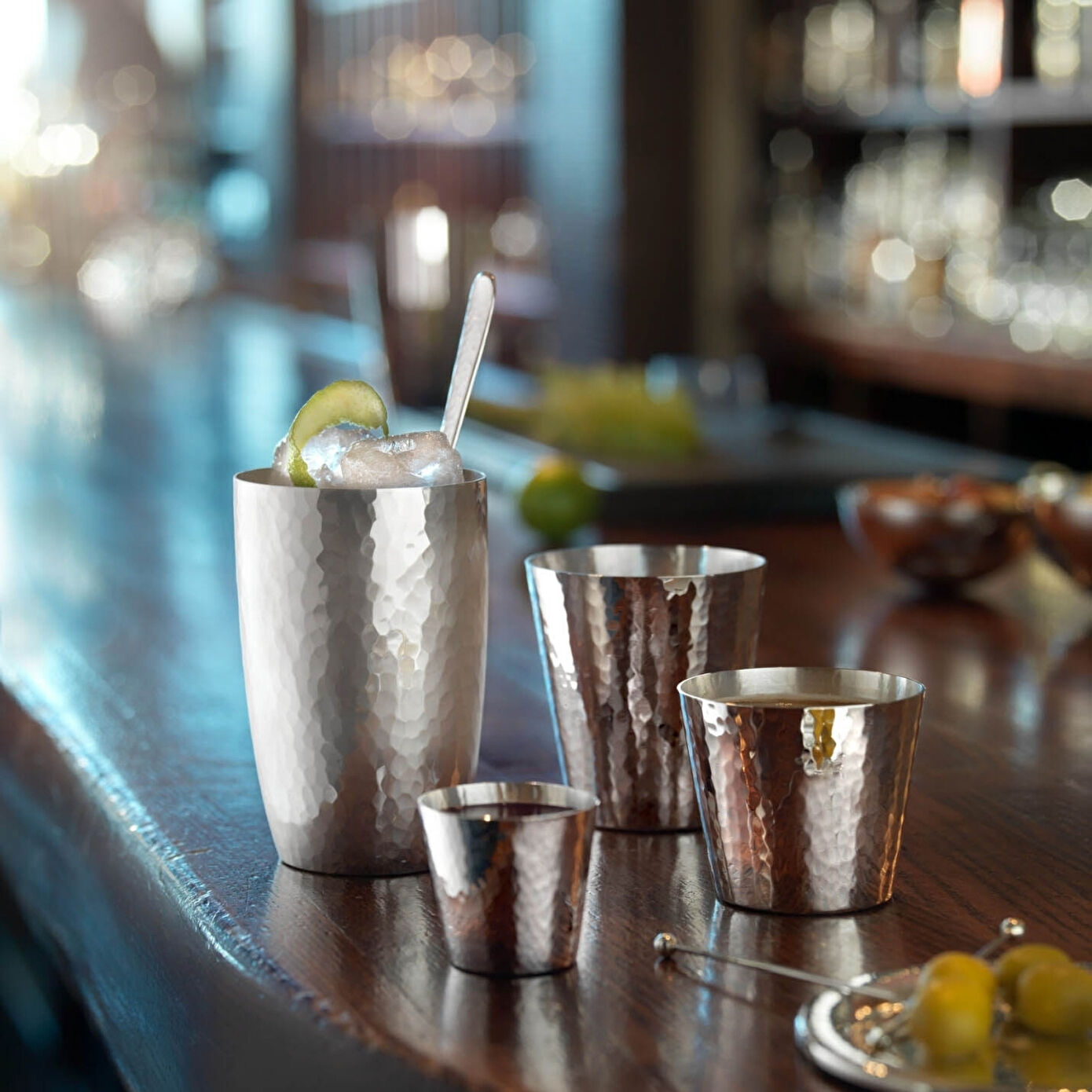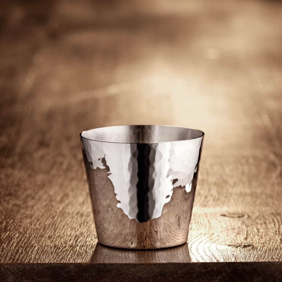 Robbe & Berking'in Martelé rom ve distilat bardağı elinize mükemmel uyum sağlar ve her içeceği gerçekten unutulmaz gösterir. Gümüşün mükemmel iletkenliği, bardağın içeceğin sıcaklığına hemen adapte olmasını sağlar, son derece ferahlatıcı ve uzun süreli içme keyfi sunar. Gümüşün parlaklığı, özel içeceklerinizin ışıltısını ve güzelliğini hiçbir şeyin yansıtamadığı gibi yansıtır. Sonuçta, gözler için bir şölen olan sadece yemekler değildir, içecekler de eşit derecede cazip olmalıdır. Ve bir kristal bardak kurutulurken bir anlık dikkatsizlik ile kırılabilirken, Robbe & Berking gümüş kaplı bardaklar asla kırılmaz.