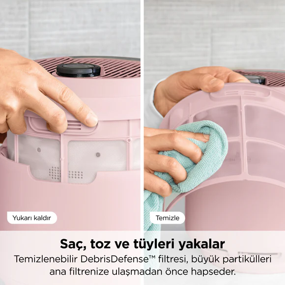Shark’ın DebrisDefence (Kir Koruma) ön filtresi, HEPA katmanını saç, toz ve tüy birikimine karşı koruyarak cihazın en yüksek verimlilikte çalışmasını sağlar.